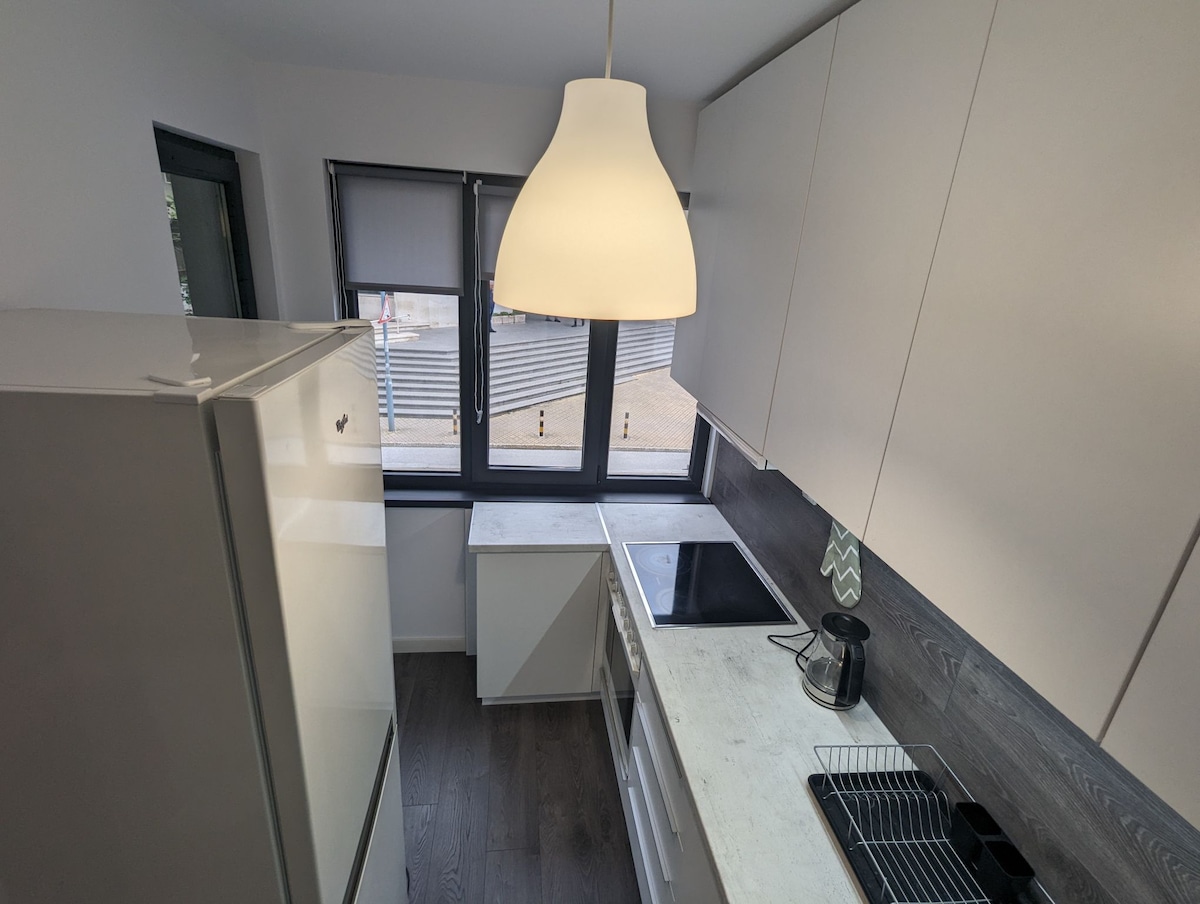 With a completely modern look, our one-bedroom apartment is now ready to welcome you! The elegant interior is carefully chosen to make you feel just like at home. The flat is fully equipped with everything you need either for your short or long-term stay. At your disposal is also a parking spot. Strong Wi-Fi connection is covering the entire property. The space is disinfected according to the Flat Manager Sanitary Standards.