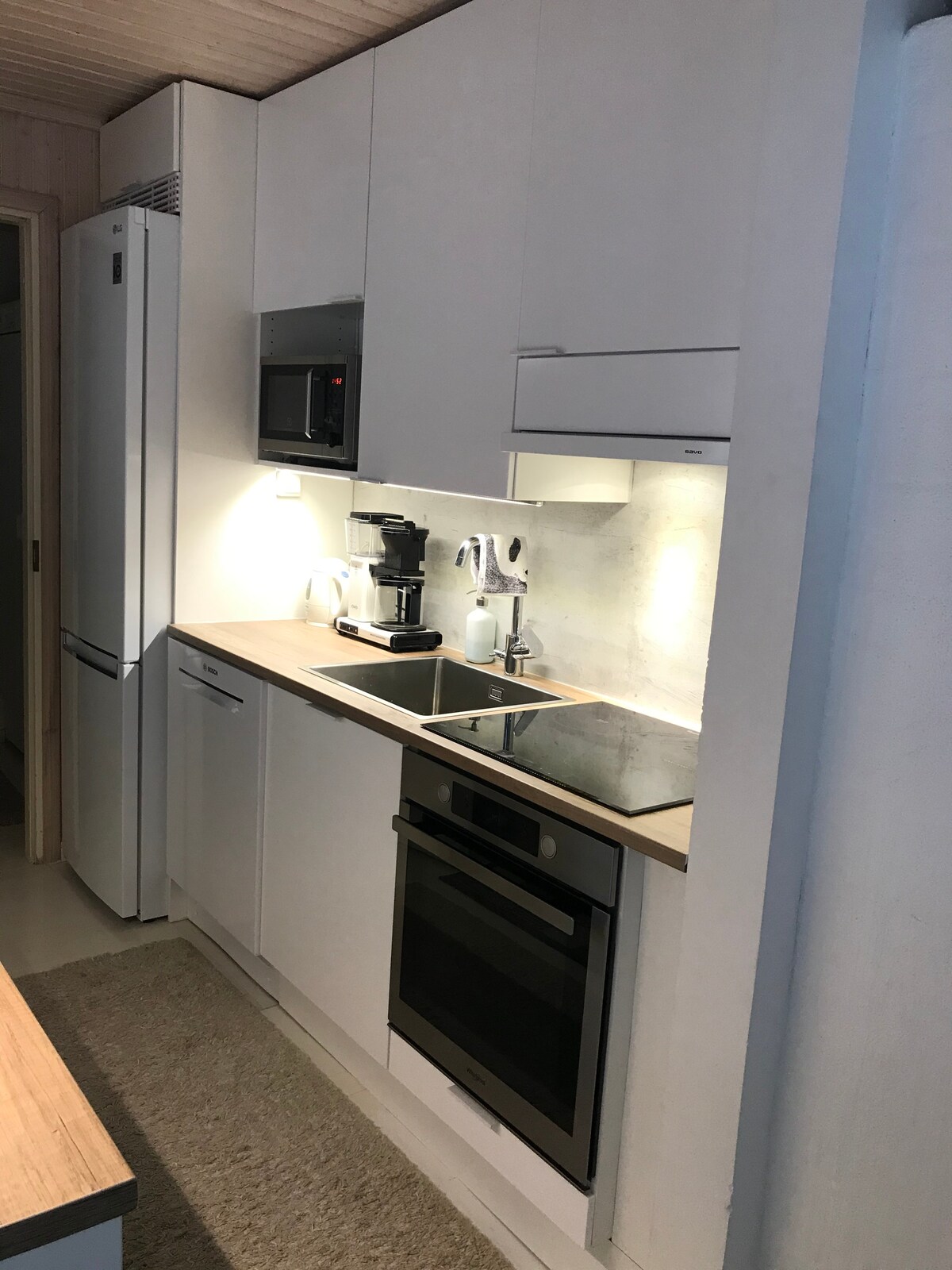 Det er plass til å være sammen her – uten stress. En privat elvebredd, badstue og en stor hage gjør dette til det perfekte stedet for familier og grupper. Plass til opptil 11 personer – ro, natur og samvær. Stort spisebord, godt utstyrt kjøkken og stemningsfull peis/bakeovn. Elven Pihlajajoki og den egne bryggen skaper de perfekte omgivelsene for bading eller for å nyte fredfulle morgener. Om vinteren er brygga et utmerket sted for isbad.