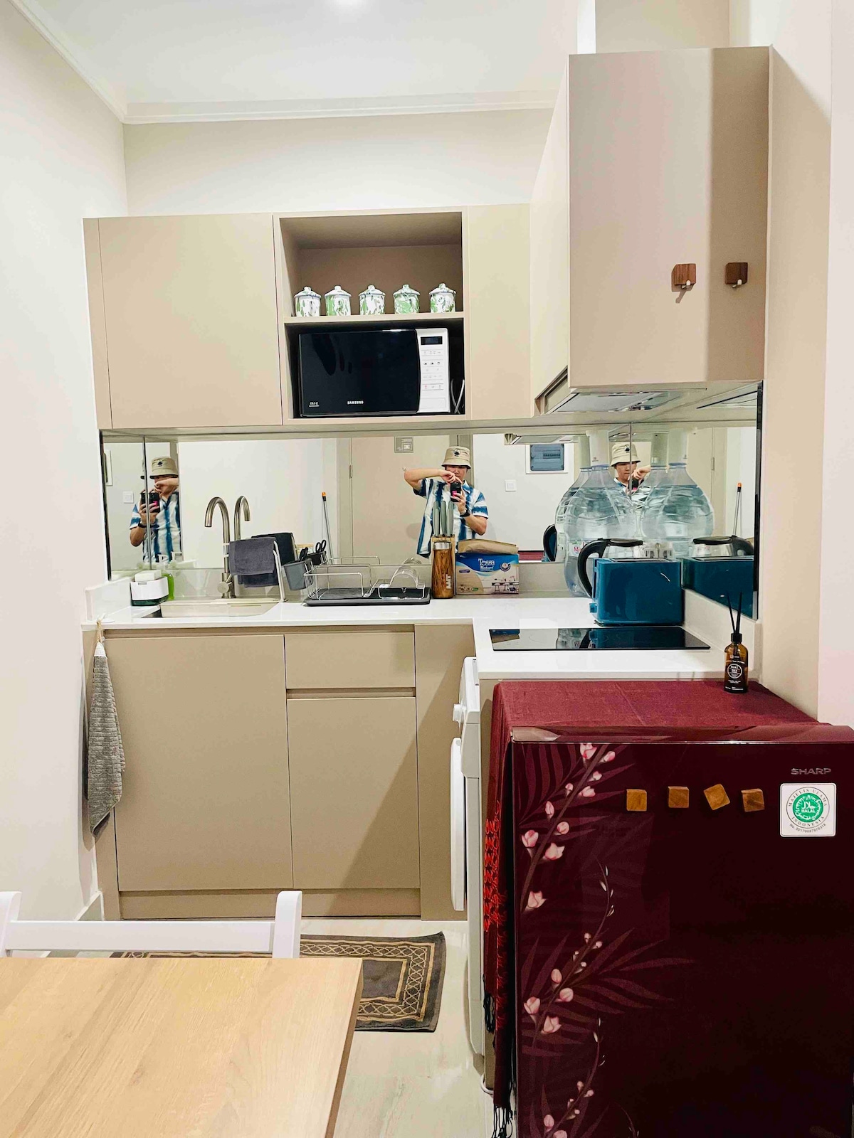 På dette stedet kan familien din bo i nærheten av alt, beliggenheten er sentral. Det ligger i nærheten av motorvei, supermarked, restaurant, kontor, museum og kafé. Bygningens ledelse, resepsjonister og sikkerhetsvakter er raske og vennlige. Anlegget er også komplett: treningsstudio, svømmebasseng, parkeringsplass. Merk: Ta med egne håndklær. Vi sørger for andre nødvendigheter, men ikke håndklær. For en studioleilighet i Jakarta er dette den største og koseligste du kan få.