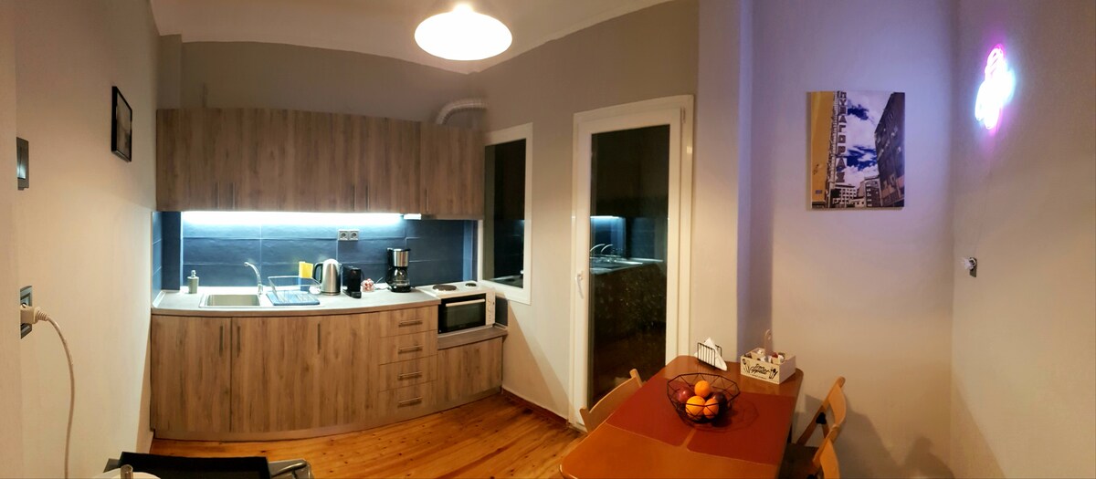 In the Heart of Thessaloniki's University Campus, right next to the city center, the Kaftantzoglio Olympic stadium and 450m away from metro station, you will find a fully renovated, equipped, 27sqm cosy, one space apartment which offers a relaxing and comfy accommodation. Ideal for guests who travel with car as there is direct access to freeway, free street parking which is usually available in a max. radious of 50m. Not highly recommended for beach or summer destinations but still a stop over.