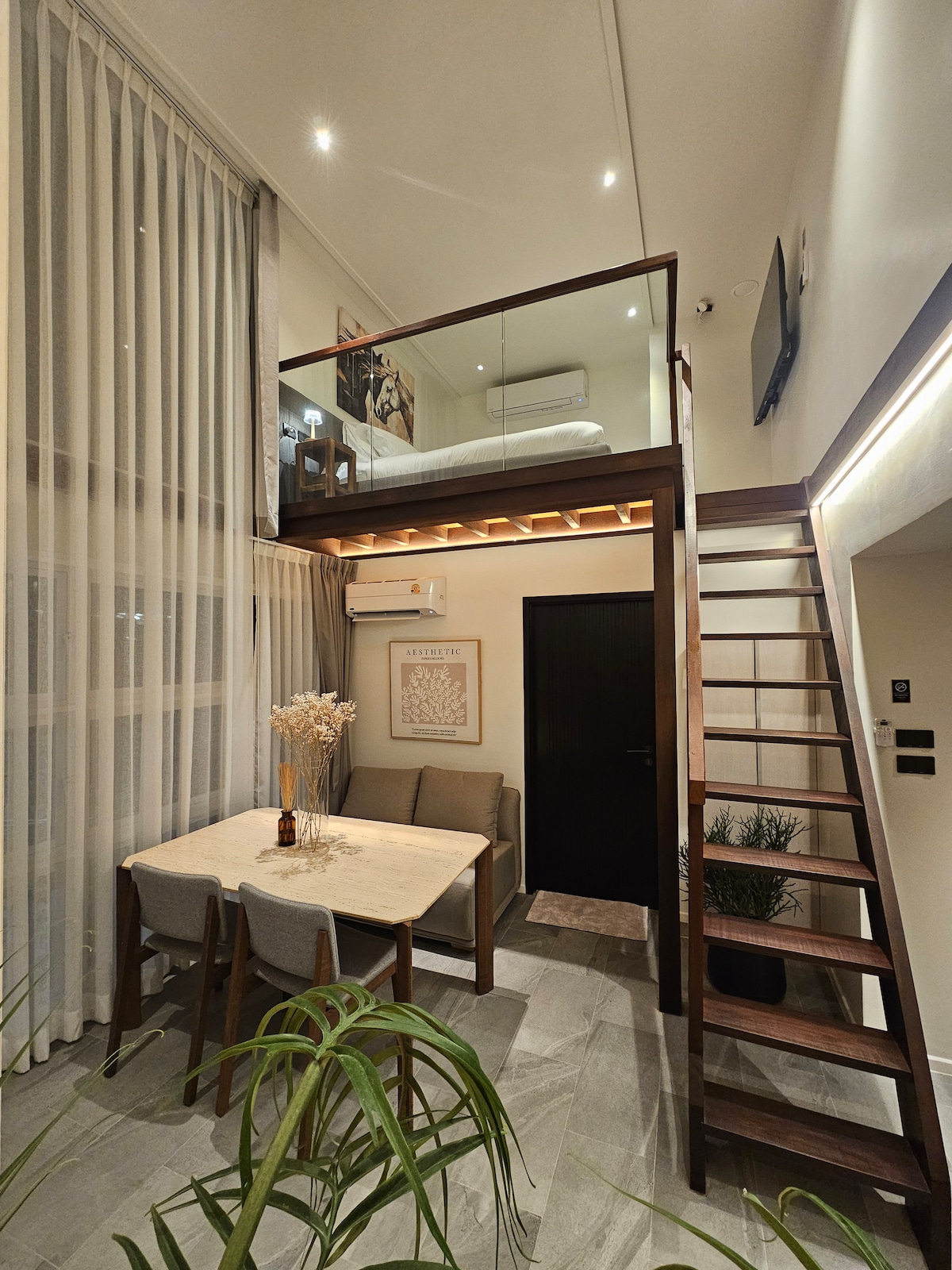 Et skjult loft med et eget, privat basseng, en sjelden flukt i Bangkok. Omgitt av grøntområder og myk belysning, tilbyr utformingen en unik følelse av åpenhet, samtidig som den føles intim og koselig. Med beliggenhet bare 450 meter fra BTS Punnawithi, har du enkel tilgang til kaféer, lokale spisesteder og byens hovedattraksjoner, samtidig som du kommer hjem til et fredelig, skjult tilfluktssted. Perfekt for par, venner eller enslige reisende som leter etter noe mer spesielt enn et vanlig byopphold. 🌴