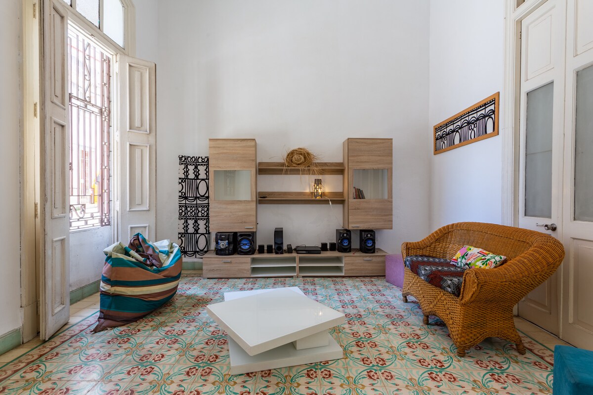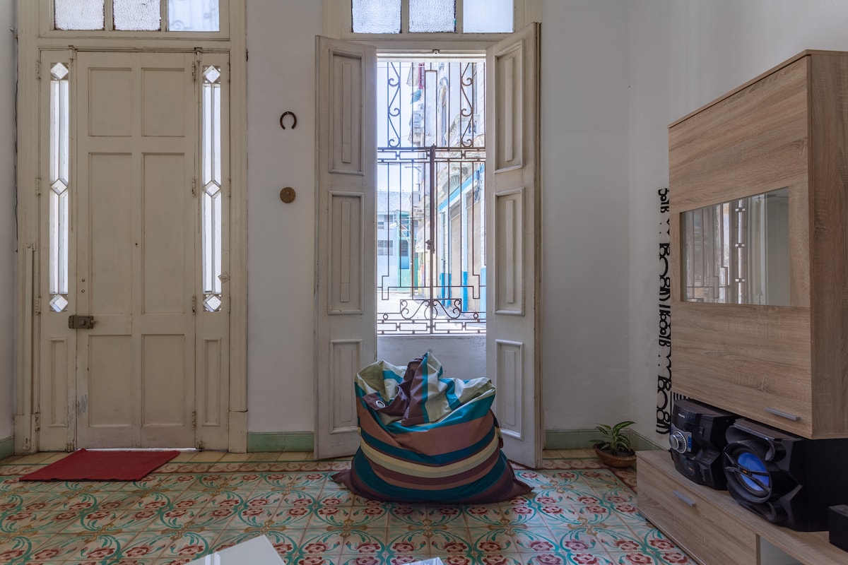 Vakker og nylig renovert leilighet, hvor du enkelt kan få tilgang til mange historiske og kulturelle landemerker i gamle Havanna. To private rom med eget bad, for totalt 4 eller 5 gjester - ett av dem, et dobbeltrom med privat balkong som vender mot gaten. Hvert rom har klimaanlegg, minibar, lås på dørene, hårføner, elektrisk vifte og safe. Taxi henting på flyplassen, turguider og colectivo tilbys. Vertinnen din vil gjerne ønske deg velkommen til Havana!