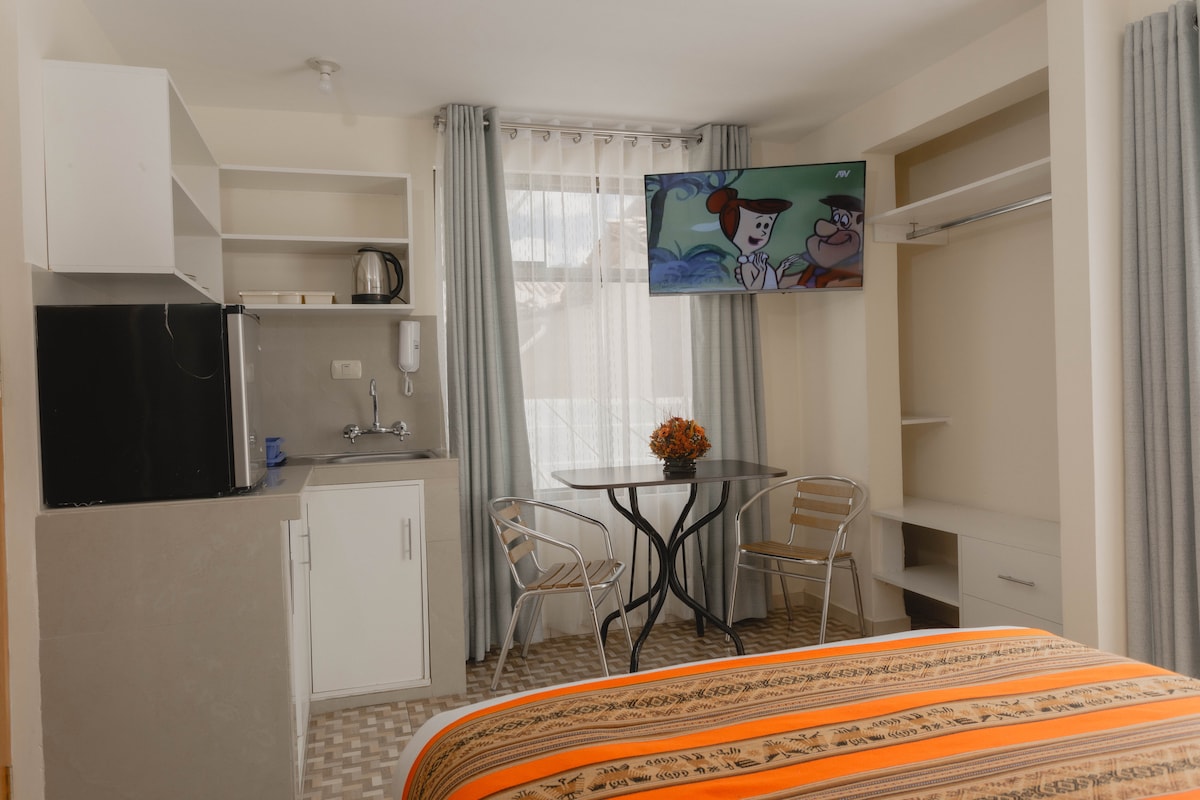 Rommet er koselig og privat for å få deg og følgesvennen din til å føle dere hjemme. Det ligger i et familiehus i nærheten og er tilgjengelig for butikker og turiststeder, i et sentralt område i den vakre byen Cusco. Det er ditt andre hjem.