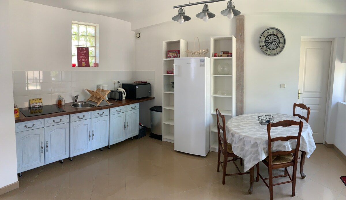 Appartement indépendant au-dessus de notre garage accessible par un escalier. Moderne et confortable dans un cadre agréable et calme en campagne. Tous commerces à 5 minutes en voiture. Adapté à tout voyageur (solo, couple, amis, collègues, famille, animaux). Dans un jardin clos où vous avez la possibilité de rentrer plusieurs véhicules. Composé d’une cuisine ouverte sur salon, un WC indépendant, une chambre et une salle de bain. Accès au jardin avec table, chaise, barbecue et jeux pour enfants.