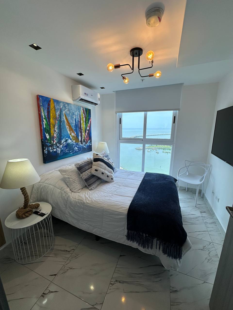 Moderne luksusleilighet på Cinta Costera, ideell for ledere, par eller familier. Romslig soverom med havutsikt, eget bad, kjøkken og apparater. Elegant design med sikkerhet døgnet rundt, treningsstudio, svømmebassenger, fire restauranter, bar og Sky Lounge. Førsteklasses beliggenhet i nærheten av supermarkeder og utmerkede spisesteder i Panama City. PANAMA