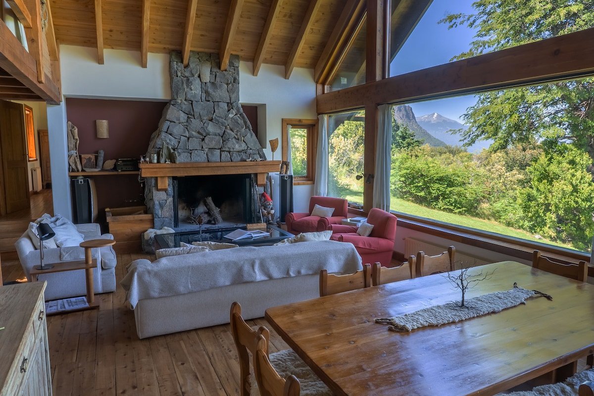 Du opplever sjarmen til dette huset umiddelbart når du kommer inn i dette moderne rommet, som er fullt av liv og badet i sol og lys. Stuen, spisestuen og det fullt utstyrte kjøkkenet deler et helt åpent område med fantastisk utsikt over Nahuel Huapi-innsjøen. Tredekket er det perfekte stedet å nyte en fantastisk patagonsk solnedgang. DET ER INGEN BESKYTTELSE FOR BABYER/BARN PÅ INNENDØRSTRAPPENE OG BEGGE UTENDØRSDEKKENE.