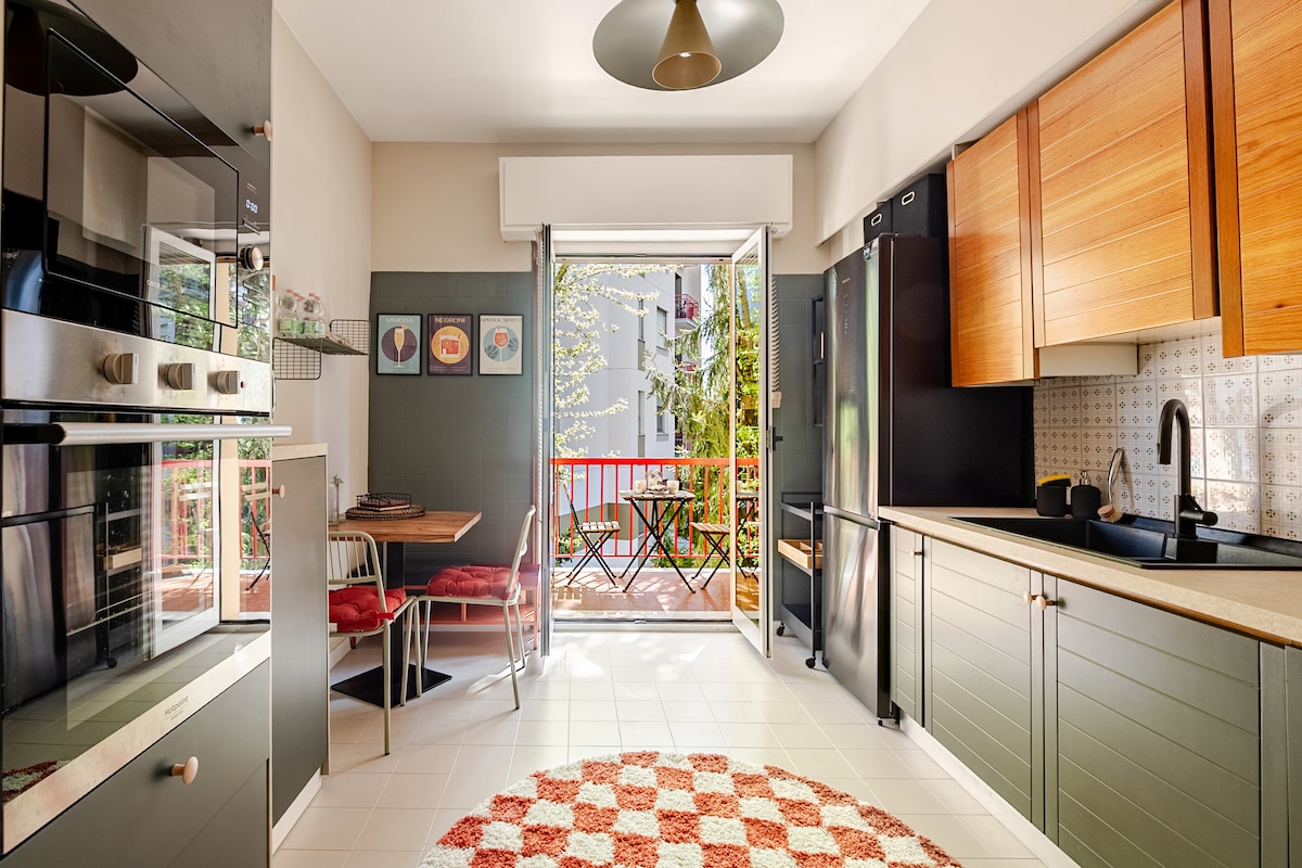 Koselig og lys to-roms leilighet i fjerde etasje uten heis med dobbel eksponering og to balkonger. Balkonger er plassert på soverommet og i stuen. Leiligheten har vaskemaskin og klimaanlegg. I tillegg er kjøkkenet utstyrt med alt du trenger for å gjøre oppholdet ditt behagelig.