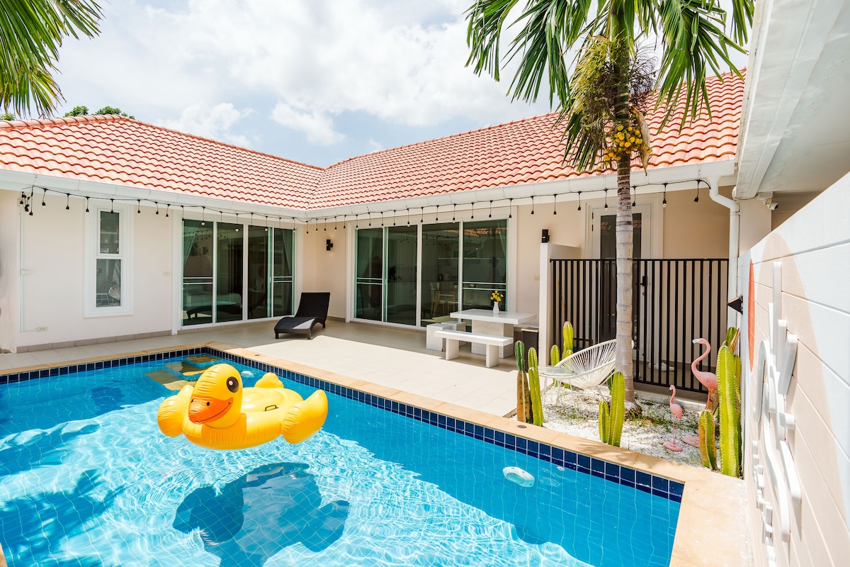 Luksus 3 soverom, fin bris, privat bassengvilla, bare 10 minutters gangavstand til havet. Dette er ditt perfekte hjem borte fra hjemmet for familietid, venners morsomme tid, ektepar romantisk ferie, selv din ensomme ferie fra kalde, travle eller rotete miljøer, selskapsutflukt og alt mulig. Namphrik & Namgang, to morsomme og vennlige søstre som er grunnleggere, verdensreisende og dyreelskere, vil gjerne ønske deg og dine kjære kjæledyr velkommen til vårt homie strandhus!!!