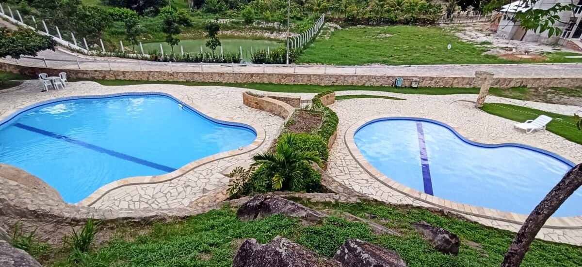 Recanto Guadalupe er et landsted i condominium, koselig, veldig skogkledd, egnet for de som ønsker å tilbringe øyeblikk av mye fred og mye ro. Huset har 2 soverom som er 1 med suite, sosialt toalett,stue for 2 omgivelser, kjøkken utstyrt med husholdningsredskaper, balkong med gourmetområde. Andelsleiligheten har minifotballbane, 2 voksne og barnebassenger.