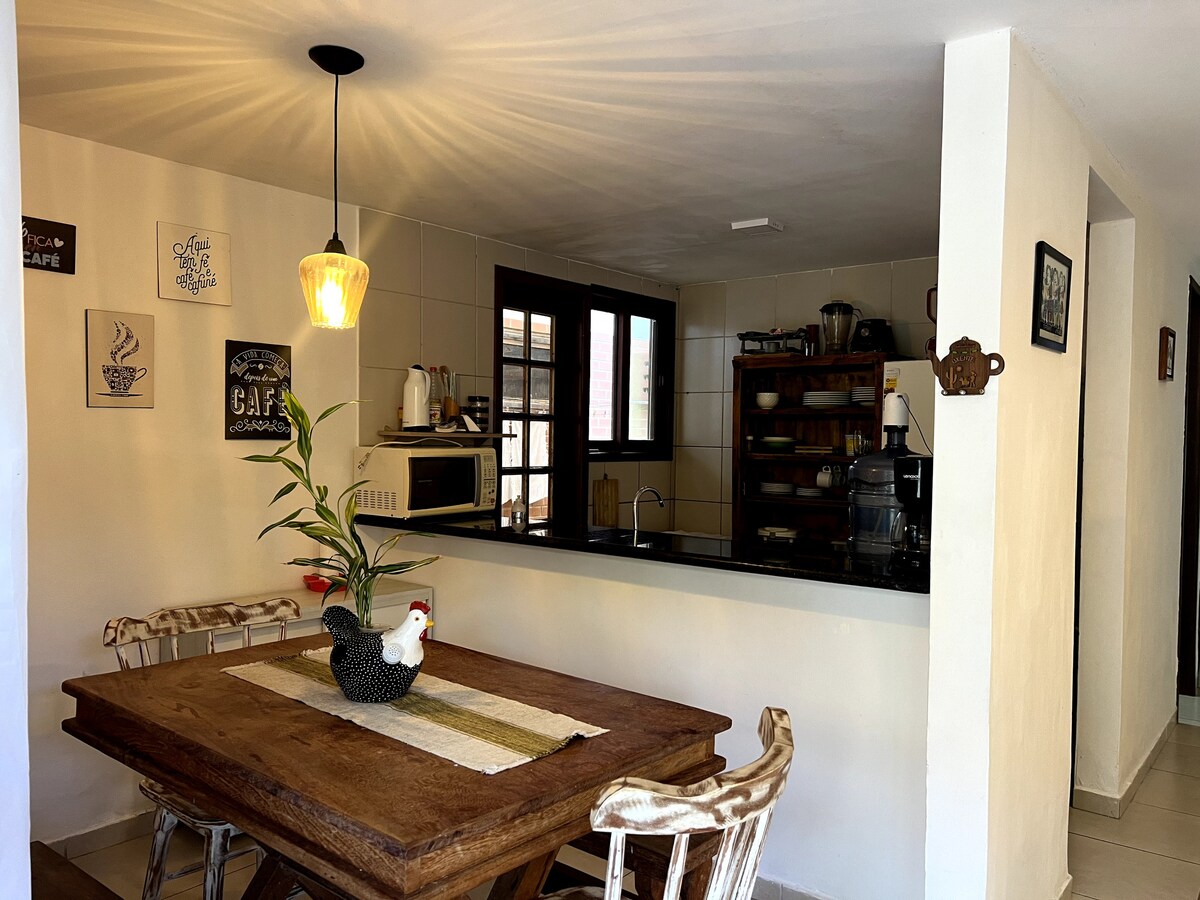 Leiligheten ligger i et inngjerdet område i Greater Gravatá-regionen, ved inngangen til Chã Grande, 17 km fra Gravatá sentrum (20 min) og 79 km fra Recife (nær Gravatá PRF). Stue/kjøkken, soverom og bad med dusjkabinett. Leiligheten ligger i første etasje med tilgang via trapp. Vi har et oppvarmet svømmebasseng, grill (ved reservasjon), park, lekebibliotek, én parkeringsplass, hengekøyer og hage.>Ikke mer enn fire personer, kjæledyr, og vi tilbyr ikke sengetøy/håndklær.