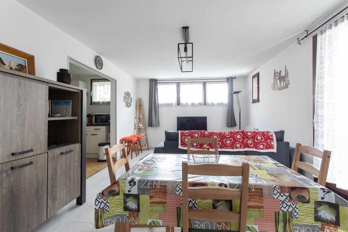 Boligen (47 kvm), med et lite blomsterområde ute, ligger i et nytt trehus (2021), i et rolig nabolag, med utsikt over fjellene i hjertet av Champsaur. Når vi bor på eiendommen, vil vi gjerne ønske deg velkommen og gi deg noen tips og gode steder i vår vakre region. Viktige punkter: Sengetøy og dusjhåndklær er tilgjengelig/parkering/Dolce Gusto-kaffemaskin/grill og ved er tilgjengelig. Gratis trådløst nettverk/rengjøring som skal gjøres ved slutten av oppholdet.