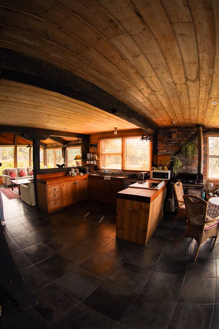 Kalinda er et hjem i tømmerhytte-stil ved stranden, med katedraltak og et loftssoverom, med den fantastiske Four Mile Creek Beach rett utenfor døren. Det er det perfekte stedet å utforske hva Tasmanias østkyst har å tilby, fra The Bay of Fires, ned til Bicheno og alt derimellom. Stedet er innredet med tanke på par for å slappe av og nyte atmosfæren ved stranden i en koselig innkvartering, med vakre hager og fugleliv i massevis.