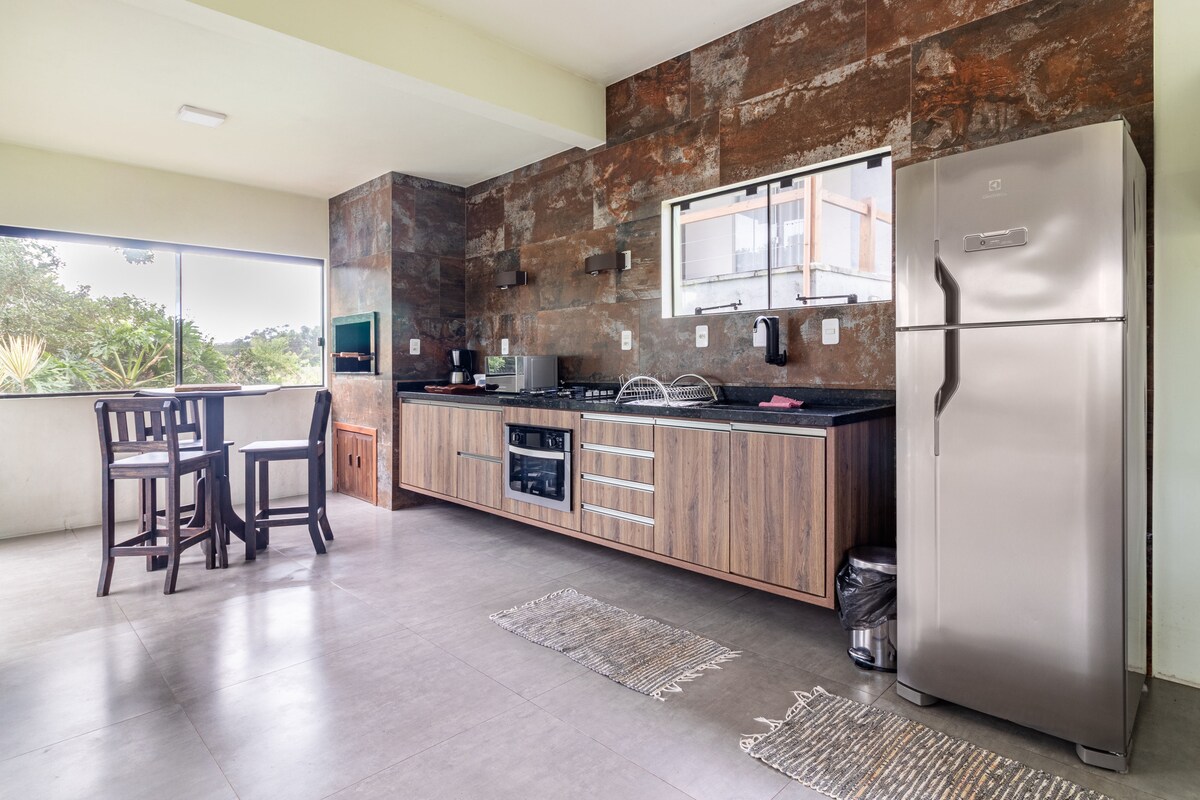 Tilfluktsstedet vårt ligger høyt oppe på fjellet, midt i den frodige Atlanterhavsskogen. Casa do Céu Inn ligger i et eksklusivt inngjerdet område, og har bare to enheter, noe som gir privatliv, sikkerhet og en fantastisk utsikt over lagunen. Vi er strategisk plassert blant de mest kjente strendene i Garopaba: med en kort spasertur langs en sti kan du nå Praia da Silveira. På bare fem minutter med bil finner du de vakre strendene i Ferrugem og Garopaba.