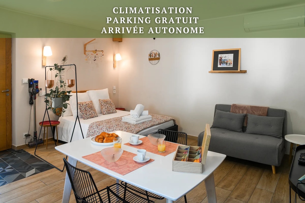Niché au cœur de la Savoie, à mi-chemin entre Chambéry et Albertville au pied du Massif des Bauges, dans le village viticole de St Jean de la Porte, PlumeCachette est un studio de 26m² idéal en solo, pour deux ami.e.s (1 lit et 1 canapé-lit) ou un couple. Entrée indépendante, parking privé, terrasse abritée, jardin réservé. Nouveauté 2025: climatisation réversible pour un confort optimum en toute saison☀️❄️