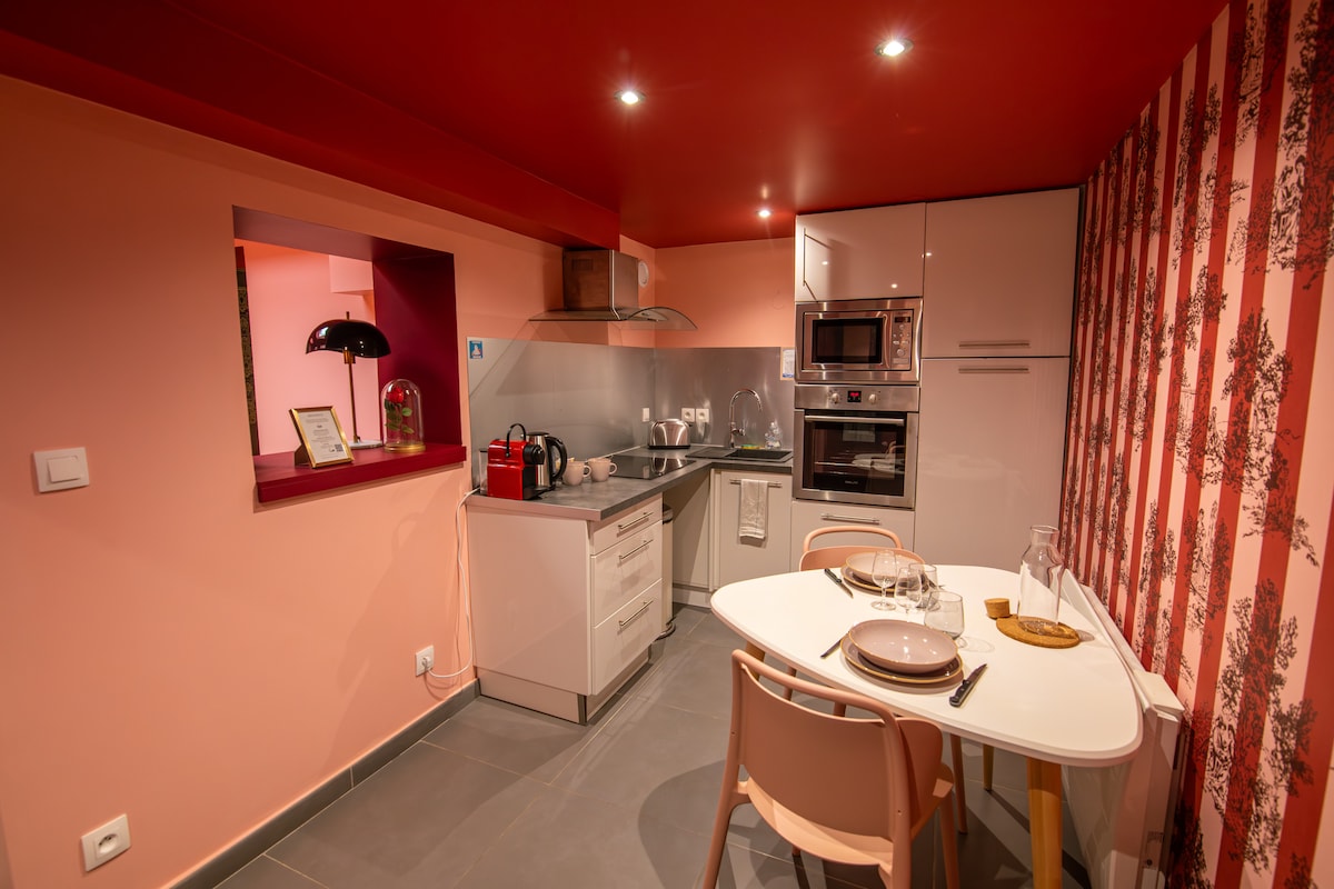 Velkommen til Parenthèse N° Six, en konfidensiell adresse i Reims, designet for å tilby deg en tidløs pause Fordyp deg i en koselig og stilig atmosfære, ideell for en romantisk ferie eller et øyeblikk å feire. 🛁 Et privat velværeområde: Nyt et stort innendørs boblebad kun for deg, i et lyst rom med raffinert innredning. 🛏️ En ultrakomfortabel rund seng, omgitt av mykt lys og fine detaljer, venter på deg for en uforglemmelig natt.