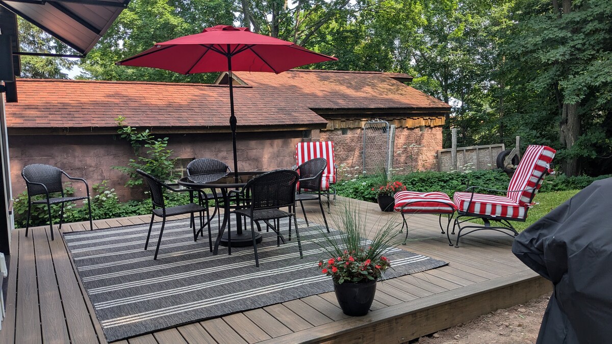 Rock Beach – 182' av Lake Superior kystlinje er din strandferie! Søk etter agater, plukk strandglass, padle i kajakk, fisk, sykle langs kysten, utforsk fossefall, bakveier og sandstrender! Delta på mange lokale arrangementer – sommerkonserter, fisketurneringer, fossefallstur, eller besøk Mount Arvon, MI høyeste punkt! Dette er stedet å slappe av og utforske. Sykler er tilgjengelige, i tillegg til kajakker! Komfortabelt plass til to personer i queensize-sengen. Futon og barneseng i full størrelse også. Ting å gjøre er uendelige!