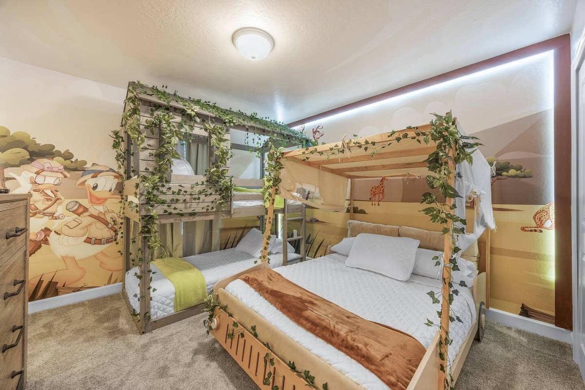 Leter du etter et opphold borte fra folkemengden, men likevel i nærheten av Disney? Dette private bassengtema-hjemmet er perfekt for å fullføre drømme-Disney-familieferien du alltid har ønsket deg. 15 miles/Magic Kingdom. – 13 miles fra Disney Springs. – 15 miles fra Epcot Center. – 25 miles / 30 Universal Studios. Gjør oppholdet magisk med våre skreddersydde temarom. Star Wars-lekeområde og kjøkken. Romantisk hovedsoverom med tema fra Tusen og en natt. Avatar Pandora. Moana soverom. Bare mindre enn to miles fra I4 hw.