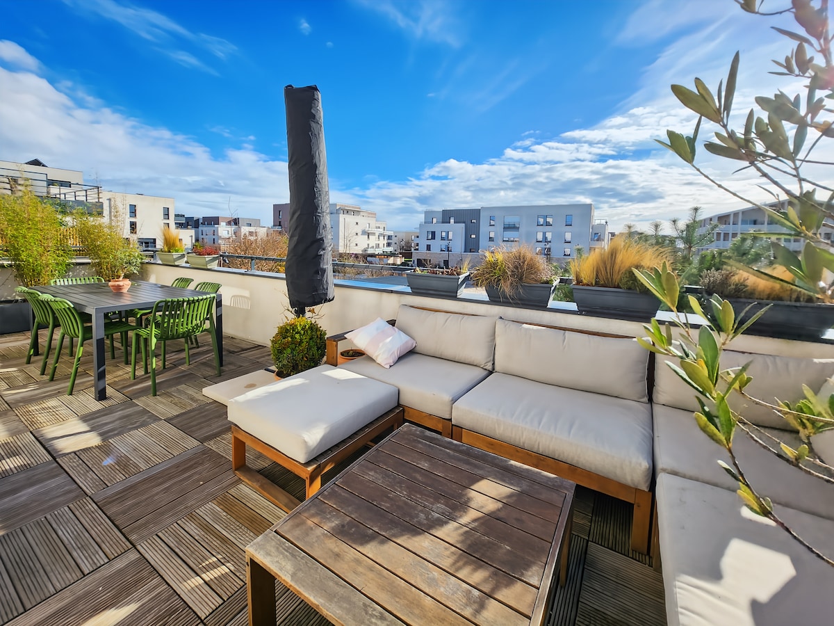 Takterrasse – 15 min fra Disney – RER A + gratis parkering
