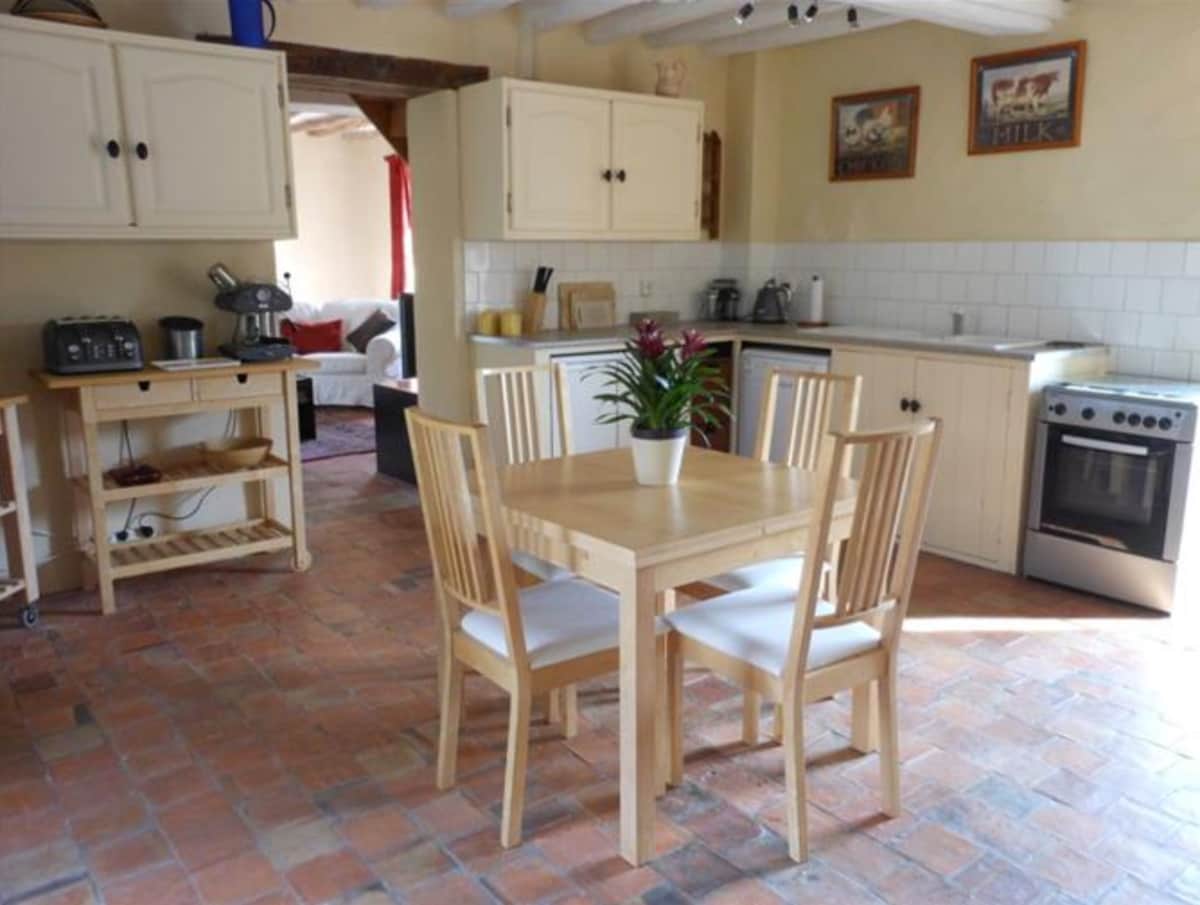 Hytta vår er sympatisk renovert og er et unikt, individuelt sted som beholder et vell av originalitet, perfekt blandet med en moderne følelse. Vi kan ta imot seks personer, med to dobbeltrom og en stor dobbeltseng i galleriområdet. En romslig stue fører til en rolig uteplass med utsikt over landsbygda. Området hytta ligger i er omgitt av en stor vollgrav som inneholder ubeskyttet dypt vann. Uegnet for små barn uten tilsyn.