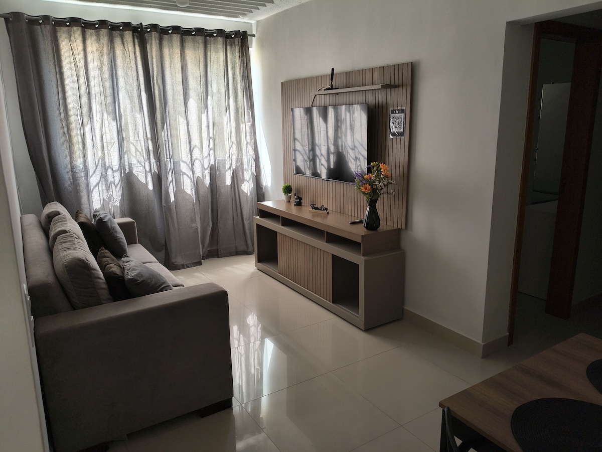 🏡 Ny leilighet med Wi-Fi, svømmebasseng og balkong – nær kjøpesenter Hyggelig leilighet i lukket boligblokk, med heis, svømmebasseng🏊, åpen lekeplass 🎠 og garasjeplass🚗. Godt ventilerte omgivelser og privat balkong🌿, som gir komfort og praktiskhet for oppholdet ditt. Privilegert 📍 beliggenhet: bare 4 minutter fra Shopping Pantanal🛍️, i nærheten av det politiske administrative senteret🏢, kreftsykehuset🏥, supermarkeder, apoteker og motorveier.