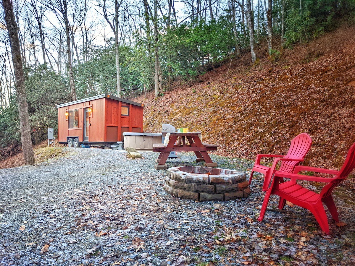 We can't adequately describe how peaceful it is to sit at the picnic table & listen to the wind through the trees or the birds serenade as the sky turns pink & purple over the Smoky Mountains. We purposely tucked our adorable Tiny Home into the woods to achieve the peaceful retreat you're looking for. You'll feel like the "Little Red Riding Hood" skipping through the woods as you escape the "Big Bad Wolf" of technology and stress. Evenings around the Firepit w/the stars are simply magical!