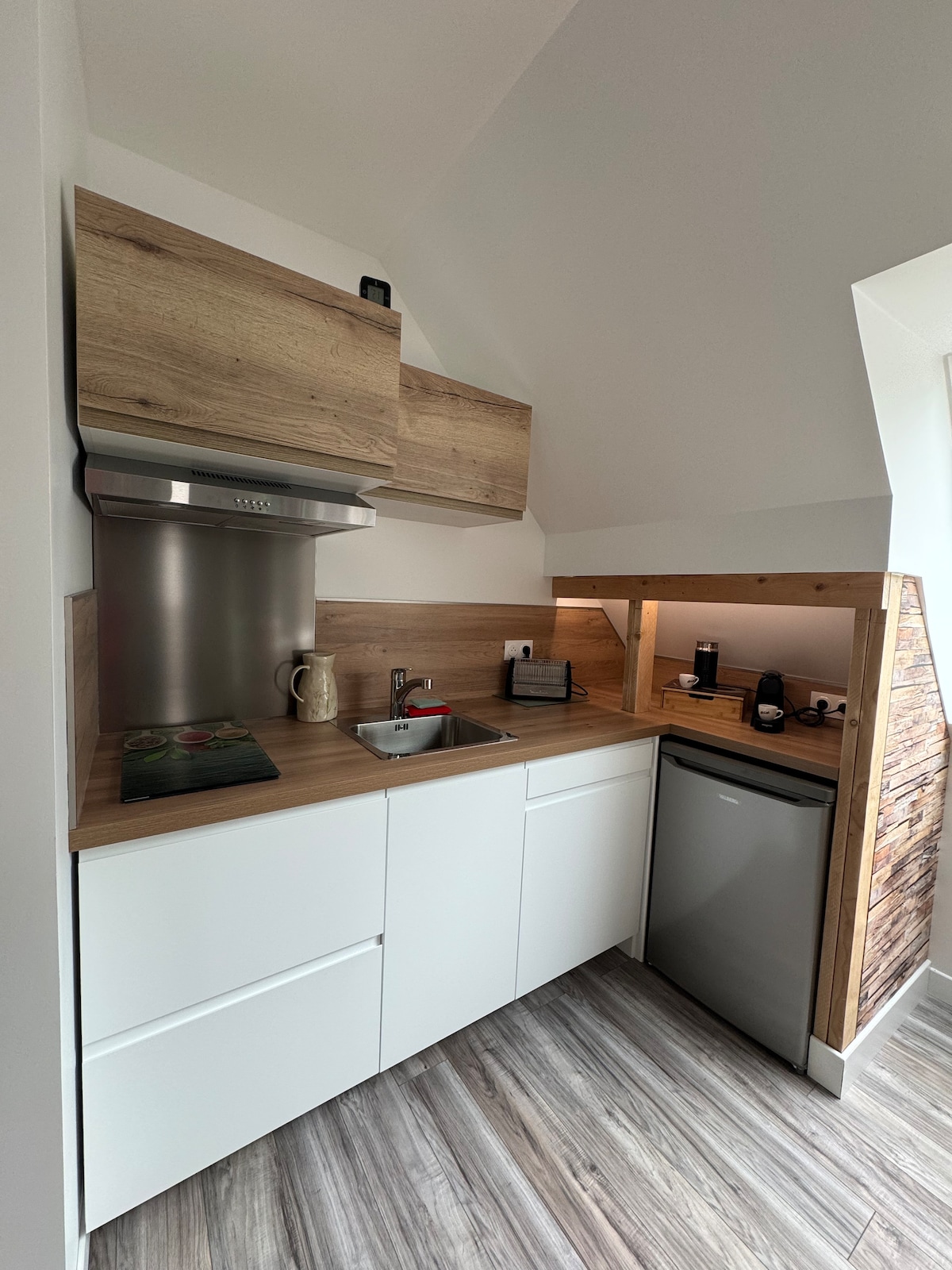 Bo i vår fullstendig renoverte hvelvete kjeller, hvor rustikk sjarm møter modernitet. Under et opplyst tak i naturstein, kan du nyte et moderne kjøkken, en koselig stue og et designbad. Slapp av i den private jacuzzien, la deg vugge av en romantisk lys atmosfære og sov fredelig under stjernene.