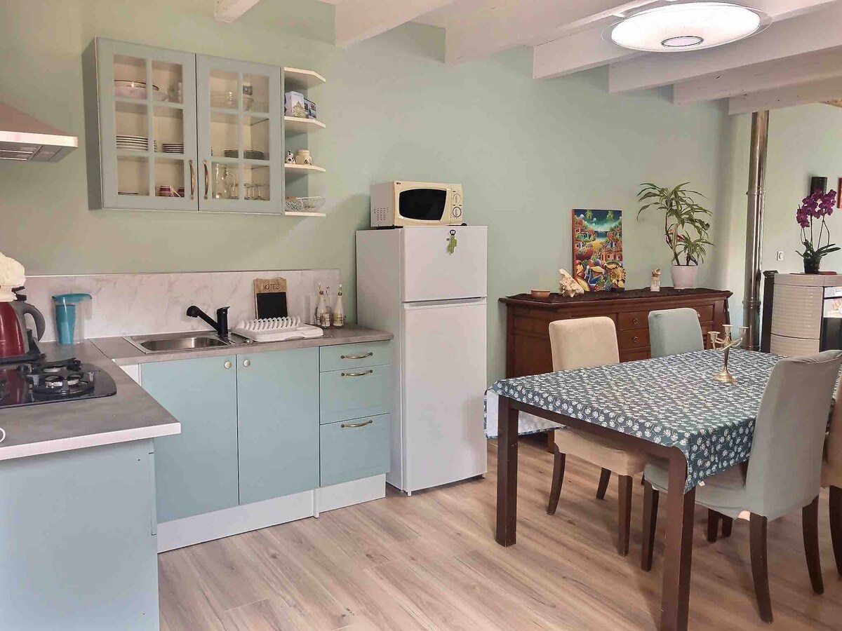 ⸻ Velkommen til Sam og Léas sted i Chaumes-en-Retz! Ta en pause og slapp av i grønne og fredelige omgivelser, mens du holder deg i nærheten av fasiliteter og havet (syv km fra nærmeste strand, ti minutter fra Pornic). Den uavhengige, møblerte studioleiligheten vår, som ligger i hagen til hovedboligen vår, tilbyr et koselig, lyst og funksjonelt sted, ideelt for en kort tur for to. Den har en fullt utstyrt stue og et tilstøtende bad med vask, dusj og toalett.