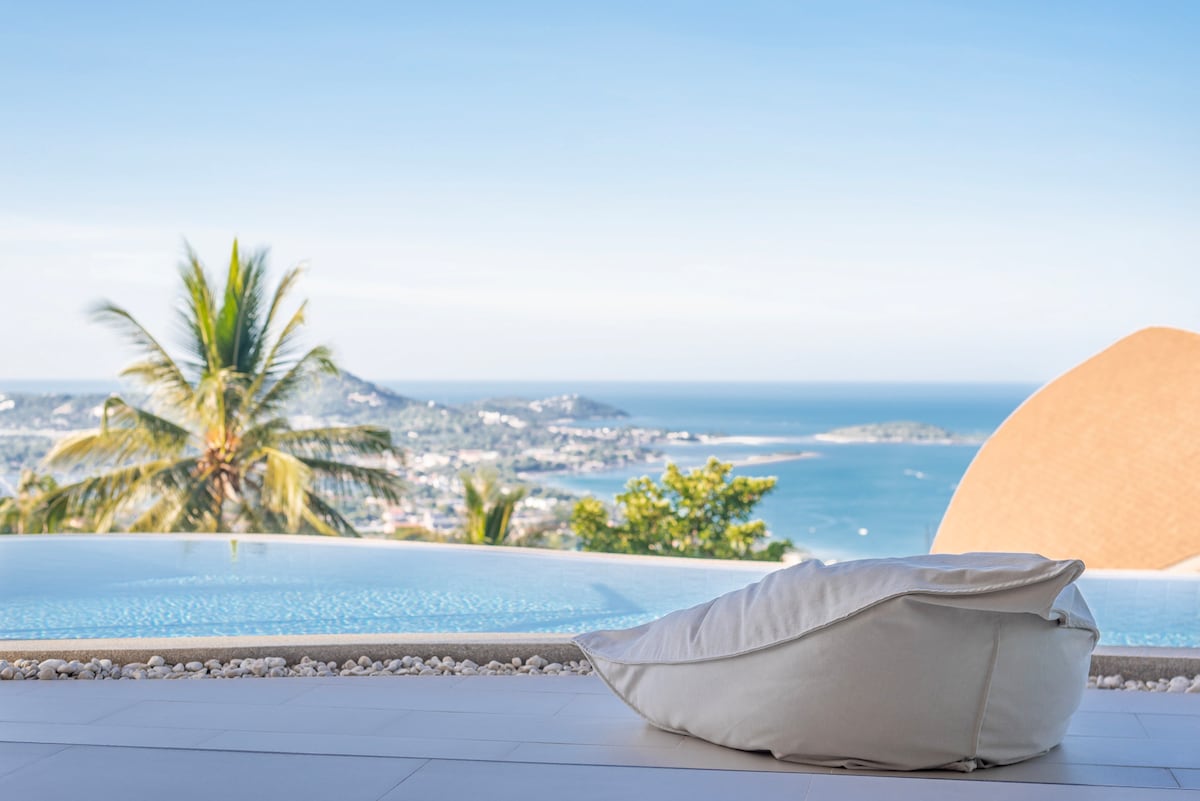 Indulge at this elegant 4-bedroom villa, featuring panoramic sea views, a private infinity pool, and a stylish game area with pool table. Just a 5-minute drive to Chaweng Beach, this spacious retreat offers modern design, fully equipped kitchen, ensuite bathrooms, and daily tropical sunsets. Perfect for families or groups seeking both relaxation and fun — with top restaurants, shops, and nightlife just minutes away.