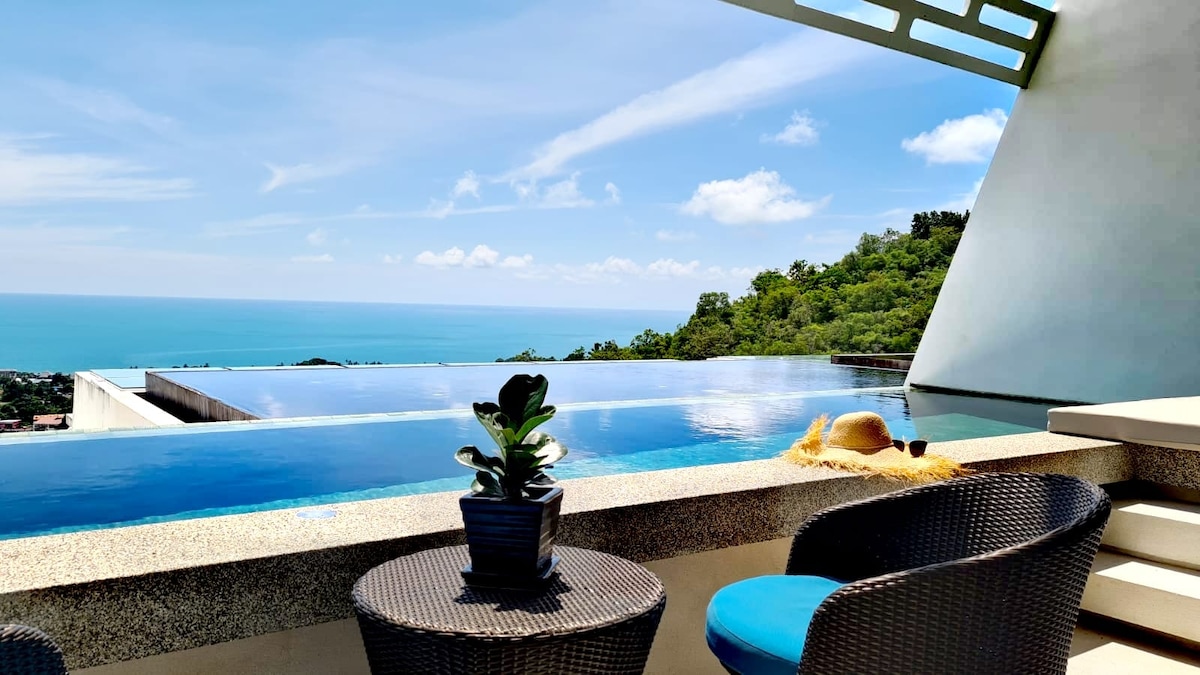 NEW ! PROFITEZ DU TARIF SPECIAL OUVERTURE ! 😀 La villa THE TERRACE, SUPERHOST AIRBNB⭐⭐⭐⭐⭐, est dotée de 2 grandes chambres en suites vue mer et d'une piscine à débordement privée ! Idéalement située sur la colline à Bophut, près du fameux Fisherman Village, sa TERRASSE OFFRE UNE VUE EXCEPTIONNELLE SURPLOMBANT LA MER ! Très moderne et lumineuse, la villa est parfaitement équipée et peut idéalement accueillir 1, 2 couples d'adultes ou une famille de 4 personnes. Petit déjeuner non inclus.