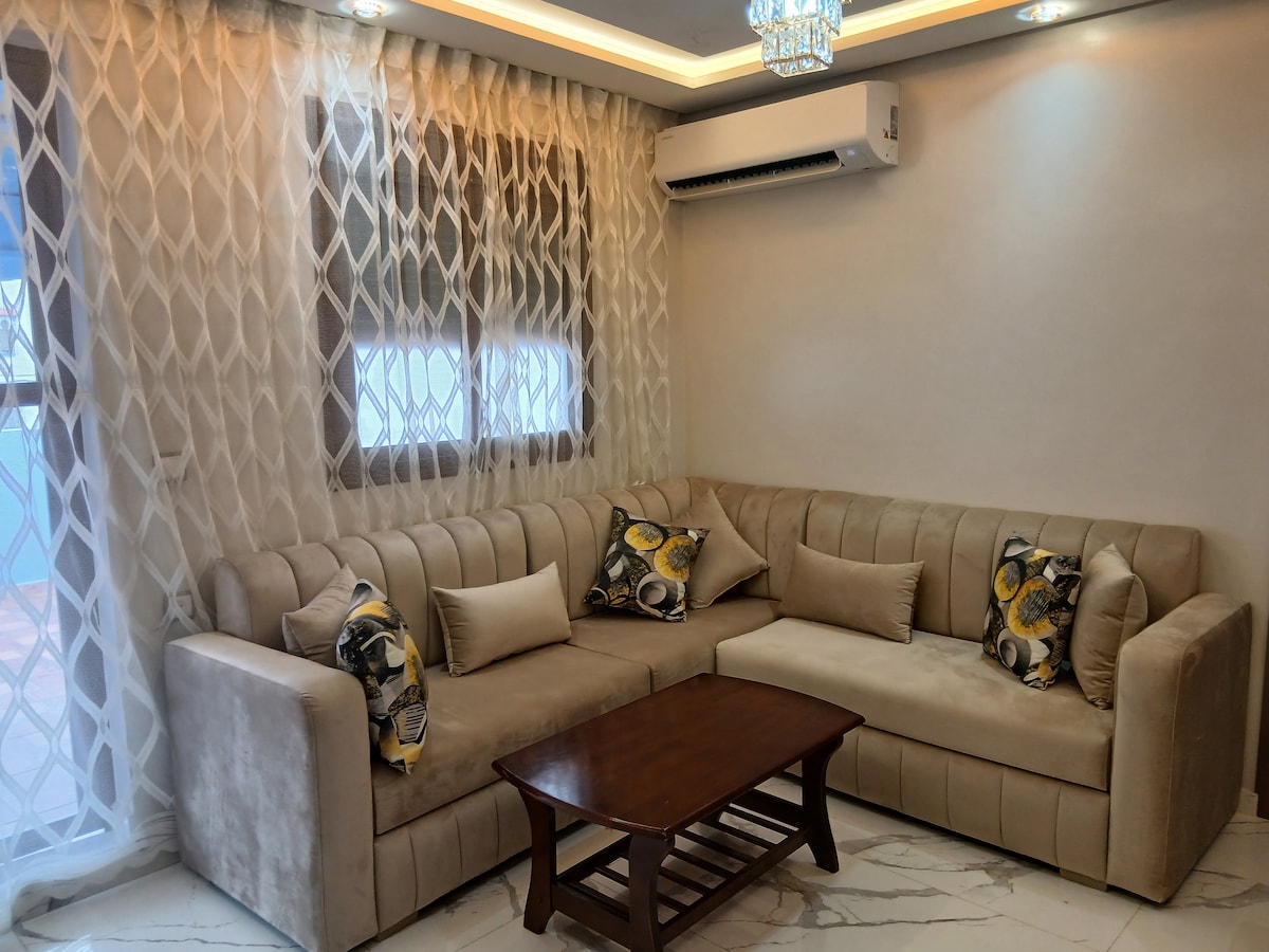 Hele gruppen har enkel tilgang til alle severdigheter og fasiliteter fra dette sentrale hjemmet. Oppdag en koselig og luksuriøs leilighet med klimaanlegg, to stilige soverom, en innbydende stue, et eksklusivt kjøkken og et moderne bad. Nyt trådløst nettverk, to TV-er og fri parkering. Beliggende foran busstasjonen og 15 minutters gange fra sentrum, er det det perfekte stedet for å utforske Chefchaouen.