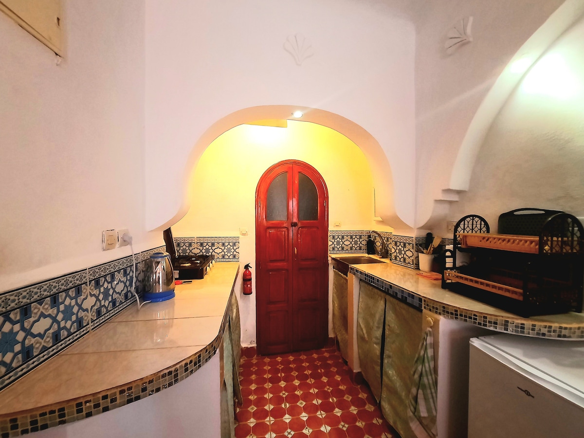 Kom deg bort til den sjarmerende leiligheten vår i hjertet av Chefchaouen, som tilbyr den perfekte blandingen av komfort og naturskjønnhet. Dette koselige tilfluktsstedet har en vakkert dekorert stue med moderne fasiliteter og autentiske marokkanske detaljer. Slapp av i det komfortable soverommet og våkne opp til fantastisk utsikt over Rif-fjellene. Perfekt for par, familier eller alenereisende. Leiligheten vår lover et minneverdig opphold i den fortryllende blå byen. Bestill ferien din i dag!