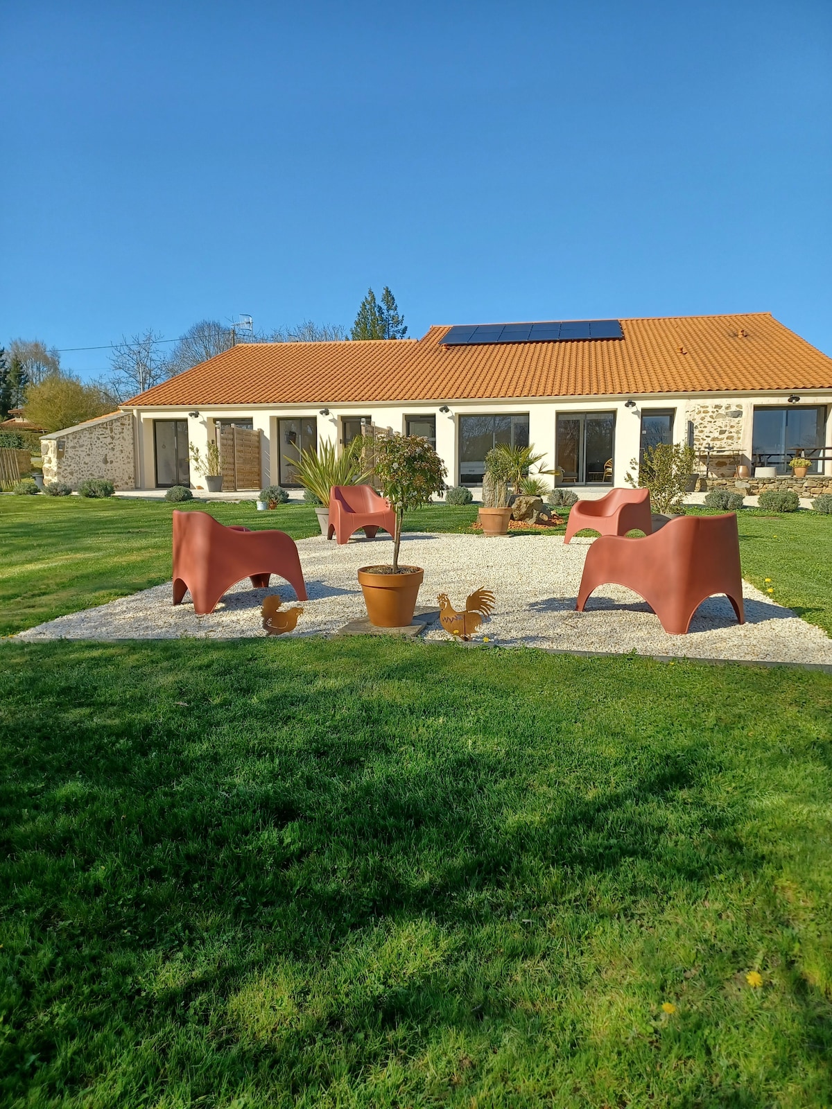 Ligger 35 minutter fra Puy du Fou, Cap au p'tit pont ønsker deg velkommen i et rolig og grønt miljø. En del av huset er tilgjengelig helt uavhengig, og er helt dedikert til deg. Et vennlig område med bistroatmosfære hvor du kan ha det gøy med spill og fritidsaktiviteter, eller slappe av i verandaen med ubegrenset tilgang til spa kun for deg. Privat basseng 4x2 åpent 1. mai solvarme, vi kan ikke garantere en nøyaktig temperatur.