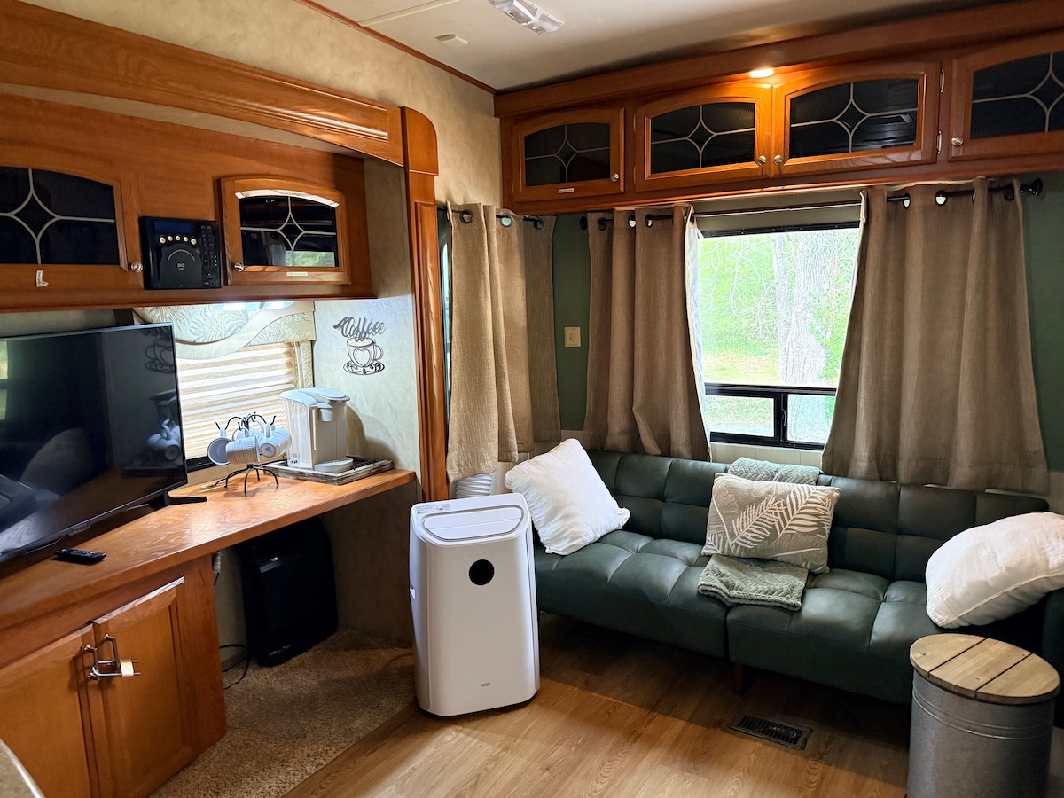 TinyBarn på Covenant Woodlands er en glampinghytte på 350 kvadratfot med loft i furuskogen i Alabama. Laget med kjærlighet av lokalt gjenvunnede gjenbrukte materialer. Utstyrt med moderne apparater som passer den nostalgiske hytteatmosfæren: en elektrisk vedovn og røde retro kjøkkenapparater komplimentert med bjørn- og elgdekor. Det er koselig, men med alt du trenger for en ferie. Utenfor finner du gyngestoler, en bålplass/utendørs spiseplass pluss en hengekøye og benk. Insta: @CWglampingInAL