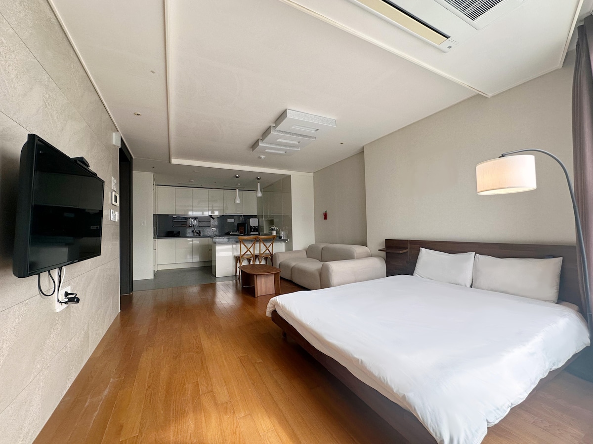 🏖 Gwangan MOODRIAN Full havutsikt over Gwangan-broen, som kompletterer en førsteklasses livsstil. Gwangalli Moodrian, beliggende i Gwangalli Beach, Busan Et verdig sted som passer for alle familieturer, kjæresteturer og vennegjenger. Det dynamiske panoramaet av Gwangan-broen utspiller seg foran øynene dine. Dette er et overnattingssted med full havutsikt som kan sees fra forsiden av soverommet og stuen. 🏝 Havutsikt · Byutsikt · Utsikt over Gwangan-broen på én skjerm En sjelden ny leilighet i Gwangalli og en romslig utforming med en to-romsstruktur på 20 kvadratmeter. Hjemlig komfort komplett med førsteklasses fasiliteter og gjennomtenkt administrasjon 🏡 Moderne og stabilt interiør med luksuriøse fasiliteter. Fra korte opphold til lange opphold, vi tilbyr den beste komforten. Vi holder det alltid rent og ryddig med vertens nøye administrasjon. Komfort er som et hotell, Hjertet er nærmere. 😊 Små øyeblikk i Mudrian Jeg håper du har et fint minne 💛