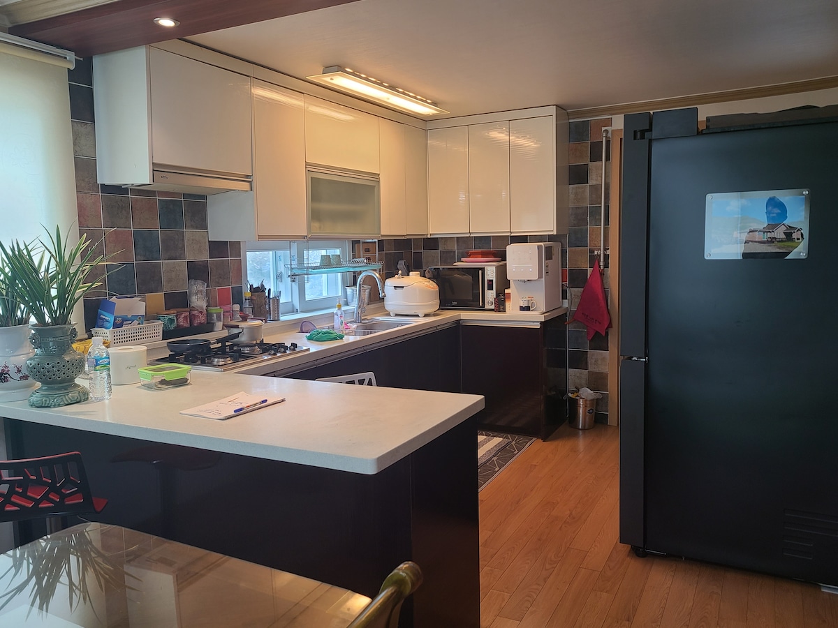 I det insta-inspirerte interiørhuset Nyt grillen og peisen. Det er et skogsopphold med et moderne og enkelt hvitt interiør som understreker raffinement og praktiskhet. I tillegg er det et spesielt sted med et stort rom med 2Bathroom & 3Room & 4QueenBed, og en grillrom som kobles til spising. (Det er en grense for åpningen av rommet og badet avhengig av antall personer, så sørg for å sjekke på forhånd i detaljene). - Absolutt forbudt å gå inn på utsiden av det planlagte antallet personer. Placebo-situasjonen overvåkes til enhver tid av CCTV ved inngangen til hver etasje. Maks antall gjester er 10, voksne eller barn. Åtte tenåringer + to spedbarn under 24 måneder (Inkludert andre besøkende gjester enn 2 personer, 20 000 KRW ekstra per person, gratis inngang til spedbarn) - Grillplassen og peisen innendørs kan brennes. (Ekstra kostnad: 30 000 won for grill/20 000 won for bålplass) - Fullt utstyrt med kald- og varmtvannsrenser, ismaskin, Nespresso-maskin, induksjonskoketopp, betalt vasketårn, ulike matlagingskrydder osv. - vask tårn for klesvask (betalt) Vask + tørking: 10 000 KRW per last Gratis tjeneste: én gang for tre påfølgende netter