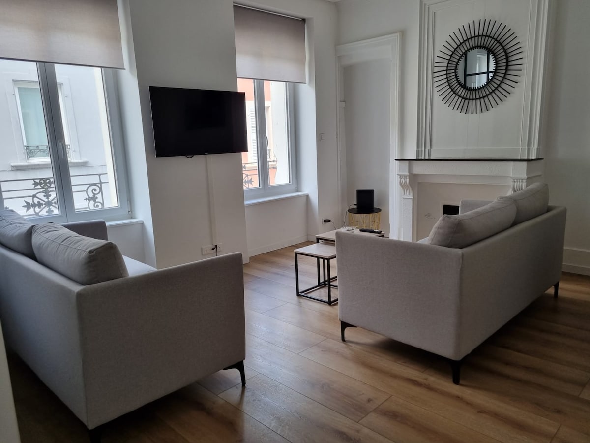 appartement rénové entièrement parfait pour découvrir Cherbourg car situé en plein cœur. ( à proximité immédiate de tout commerces, transports, cafés, restaurants, port de plaisance, gare, pharmacies, boulangeries... ) Vous disposez d'une pièce de vie chaleureuse avec un ameublement de qualité, une cuisine équipée, tout le nécessaire. celui-ci a de très grandes fenêtres qui le rendent très lumineux il y a deux chambres spacieuses avec tout le confort et une salle de bain moderne.Tres calme.