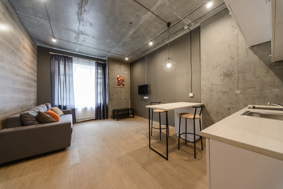 En leilighet i en bedriftsklassebygning. Stilig renovering i lyse farger. Utstyrt med alle nødvendige apparater for en komfortabel Flott for både fritids- og jobbreiser. Huset har tre restauranter (europeisk, italiensk og middelhavsmat), et treningsstudio, sikker parkering. Et stort Novus-supermarked ligger to minutters gange fra huset. Komod kjøpesenter ligger fem minutters gange unna, som har en moderne Multiplex-kino. Det internasjonale utstillingssenteret ligger 200 meter unna.
