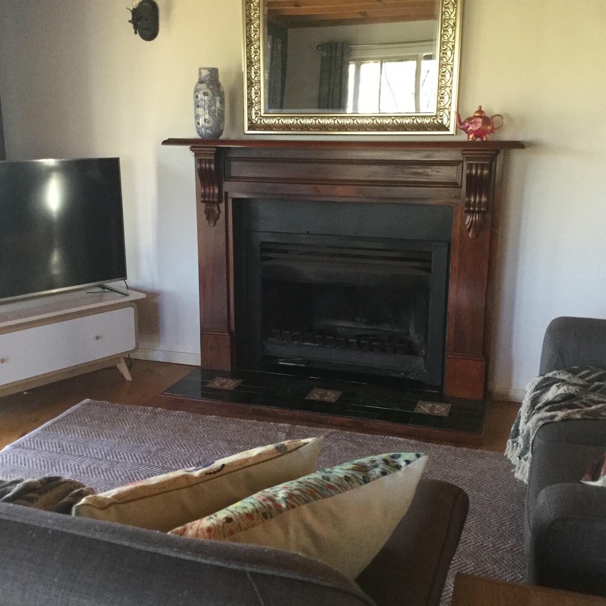 This lovely period cottage has everything you need, and is situated an easy 10 minute (700 m) walk to the historic Piper Street. There you will find world class art, crafts, antiques, cafe's and wine bars. Once you've ventured out, kick back next to an inviting gas log fire or split system aircon. Choose a movie with Netflix on the 55 inch LG, or sip wine and chomp cheese, in the secluded backyard oasis. For those who need to keep working we have a desk and comfortable office chair.