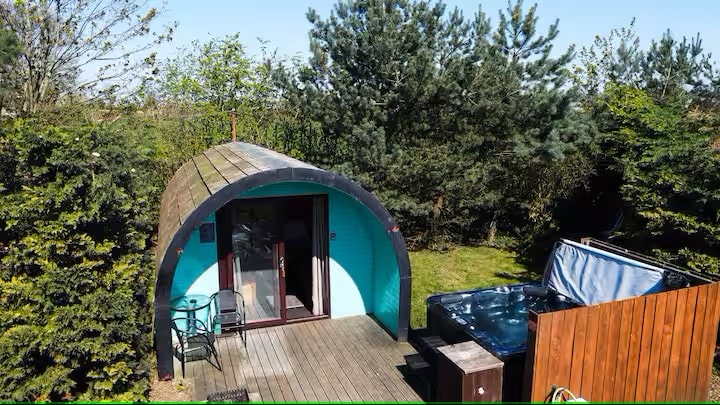 Flykt ut på landet og slapp av med stil med vår Superior Glamping Pod, designet med par og nære venner i tankene. Denne luksuskapselen ligger bortgjemt i de rolige omgivelsene i Lady Heyes Holiday Park, og handler om komfort, privatliv og litt nytelse. Gå inn for å finne et varmt og innbydende sted med en myk dobbeltseng, elegant bad , TV og trådløst nettverk. Synk ned i ditt private boblebad med et glass boblende, se på solnedgangen eller stjernekikk inn i natten.