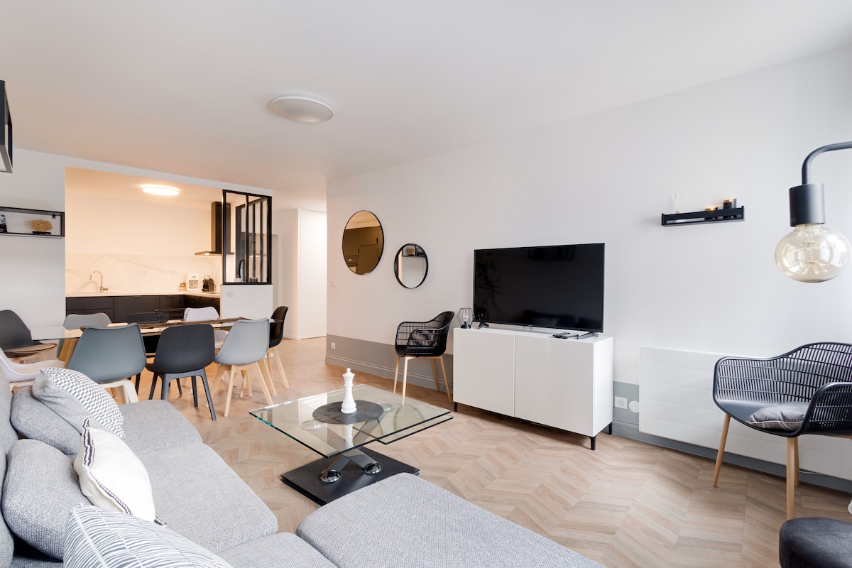 Velkommen til familiekokongen vår, som ligger bare minutter fra Disneyland Paris og kjøpesenteret Val d'Europe! Finn deg til rette i en rolig, moderne og perfekt utstyrt leilighet, ideell for et opphold med familie, venner eller som et par. ✨ 🚶♂️Alle butikker, bakerier og restauranter ligger innenfor gangavstand. Fem minutters gange til en stor park med innsjø. Rer A i umiddelbar nærhet Sikker privat🚗 kjellerparkering inkludert. 🔐 Innsjekking uten vert er mulig med en smartlås