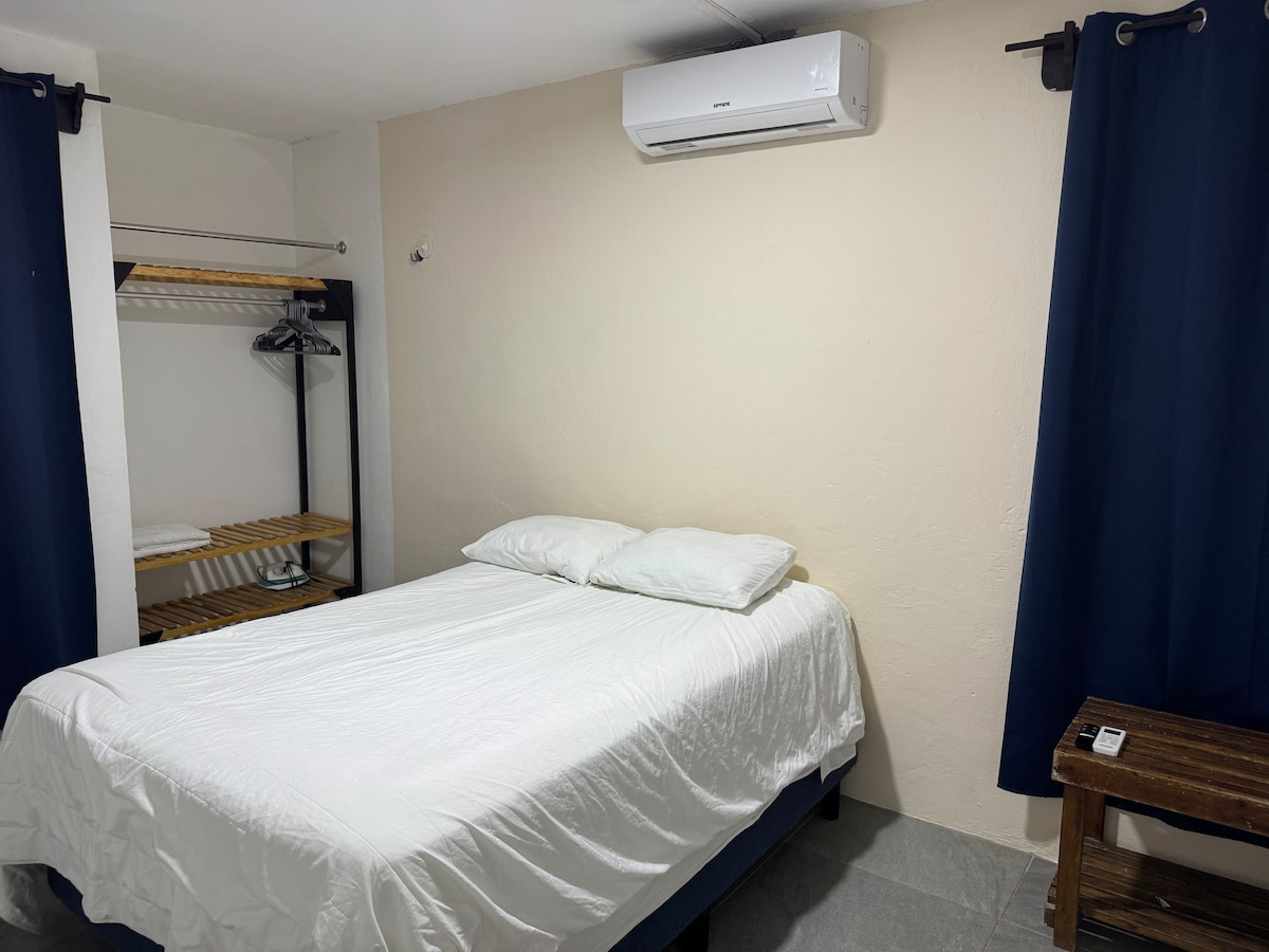 Vi ligger i et sentralt område, romslig, komfortabelt, med overbygd garasje og terrasse. Vi ligger 15 minutter til fots fra Chetumal Bay. Den har 1 dobbeltseng, 1 enkeltseng og hengekøye, bad, romslig kjøkken, komfyr og kjøleskap. I spisestuen kan du spise frokost mens du ser på TV. Stuen har sofa og TV, slik at du kan slappe av etter å ha besøkt Zona Libre. Bussene går 10 minutter til fots. Du trenger ikke å bekymre deg for parkering, vi har en eksklusiv port for deg. Det er et trygt område.
