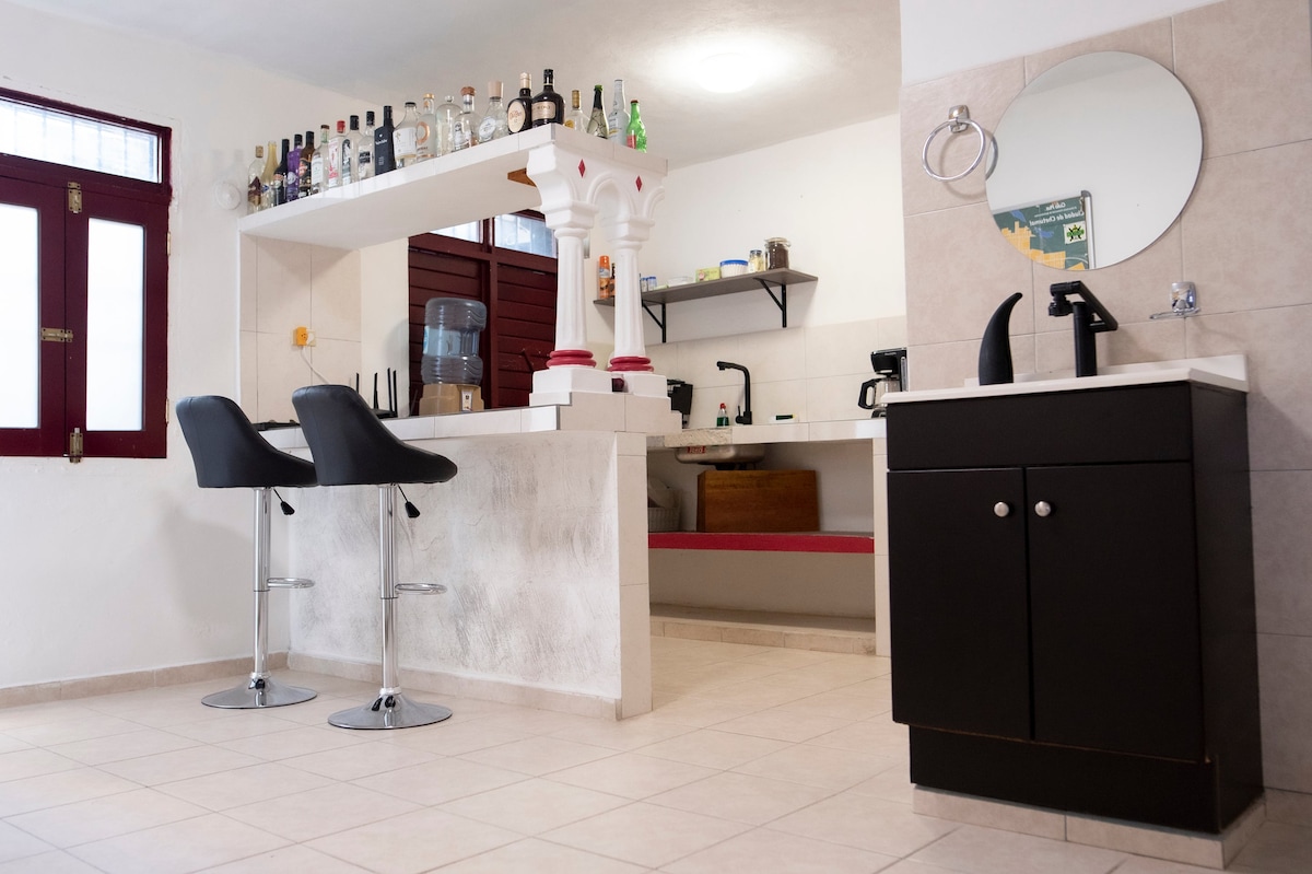 Bo i det historiske sentrum av Chetumal, i Mexicos første magiske nabolag. Et komfortabelt og funksjonelt sted bygget på fundamentet til den legendariske restauranten Pantoja, noen få skritt unna Museet for mayakultur, byens hovedmarked og ved siden av taxiforeningen. Privat rom for fire personer med to queensize-senger, klimaanlegg, wifi, smart-TV og privat bad. Egen innsjekking. Et sted hvor du kan hvile deg komfortabelt, komme deg enkelt rundt og få mest mulig ut av byen.