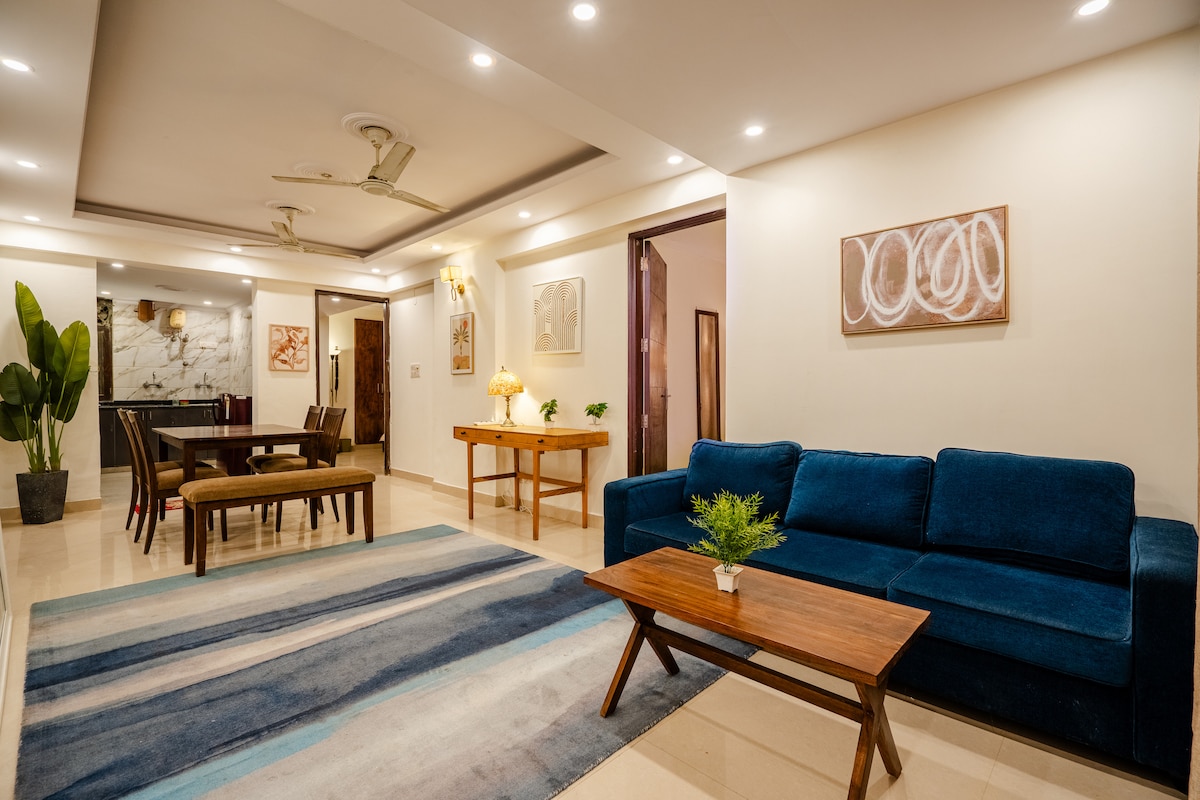 Bo på vårt romslige 2BR Park-View Retreat, 8,5 km fra flyplasser og 15 minutter med bil til metroen. Nyt luftige balkonger, parkutsikt, mahogni-/tresenger, et fullt utstyrt kjøkken, høyhastighets Wi-Fi, smart-TV, gratis toalettartikler og lokale anbefalinger. Nyt hjemmelagde måltider, utforsk nærliggende markeder og kjøpesentre, og slapp av med rolige joggestier. Opplev førsteklasses gjestfrihet med fleksibel innsjekking/utsjekking, vaskeritjenester og valgfri flyplasstransport. Bestill nå for et minneverdig opphold i Delhi!