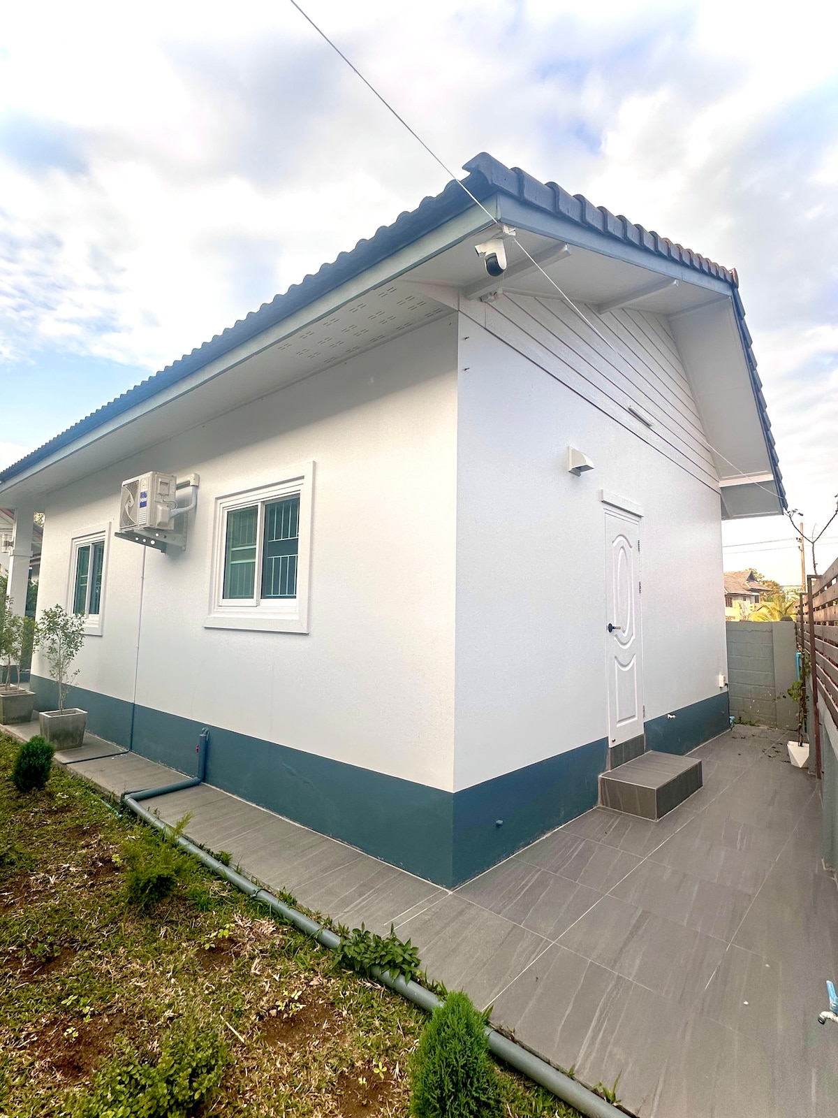 Huset ligger på foten av en ås i et privat område, veldig trygt, stille, … bare 350 meter til varme kilder, innsjø, restauranter og et privat stort svømmebasseng, og bare 10–15 minutter til Chiangrai nattbasar. Big C. Bungalow er på ca. 60 kvadratmeter, stort bad, stor balkong hvor du kan nyte hagen og utsikten, svømmebassenget er på eiendommen og det er utsikt mot fjellet! kjøkken og en stor hage på 12 rais land