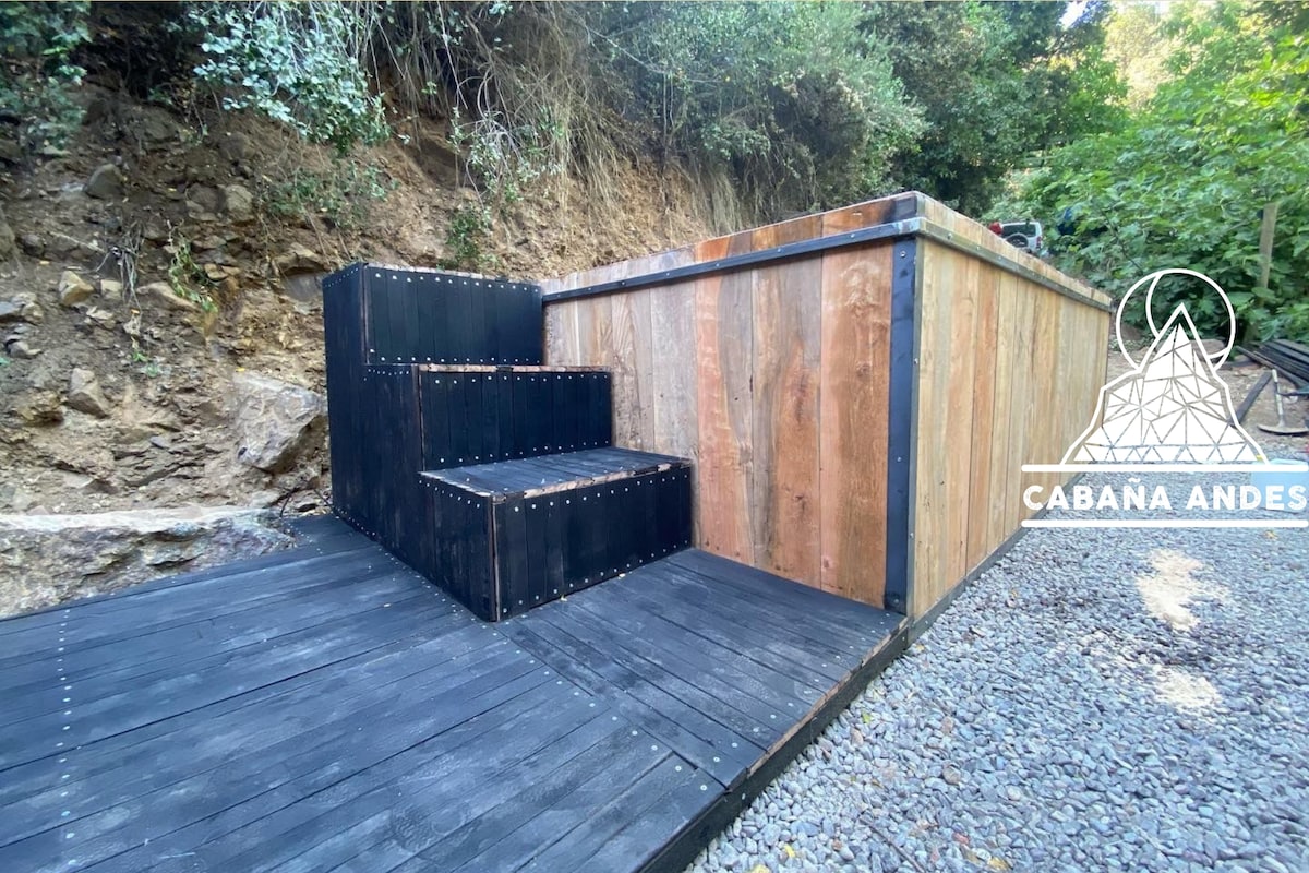 Cabaña Andes, vi er nær Santiago i foten av fjellene på 1200 meter høyde, omgitt av sklerofyllskog med utrolig utsikt over dalen, fjellene og stjernene. Vi har en overbygd terrasse, en naturlig skråning egnet for bading, et privat basseng som blir en XL-krukke med 6000 liter vann fra en skråning på 40 °C, kapasitet for 12 personer med hydromassasje. Hytta er privat og har alle fasiliteter og utstyr for å få mest mulig ut av oppholdet og trådløst nettverk.