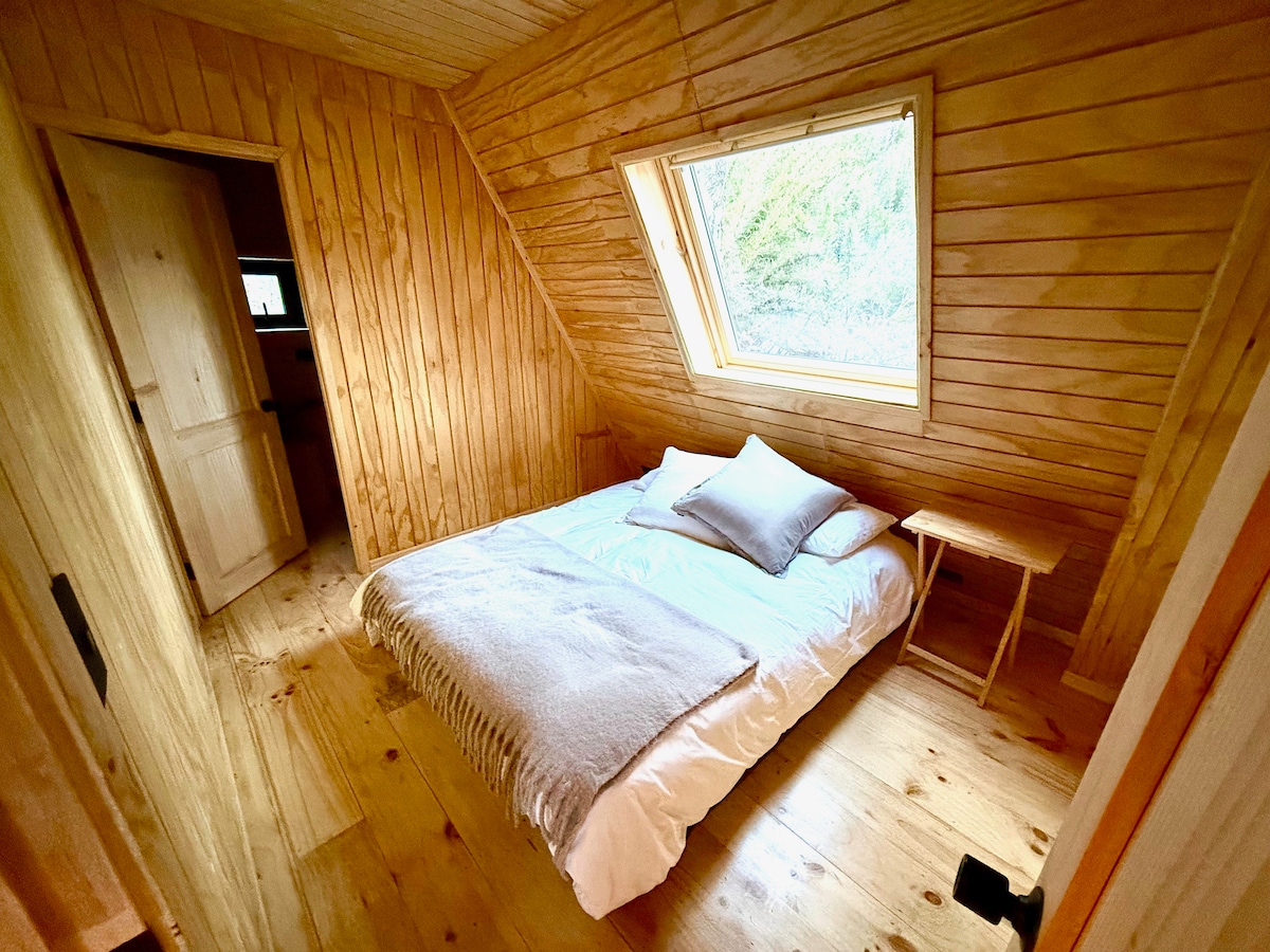 Domo Antú/Sol-hytte, utstyrt for 7 personer, første etasje; 1 soverom med dobbeltseng, 1 bad med dusjkabin, dusj, utstyrt kjøkken, kjøleskap, stue, spisestue, langsom forbrenning, vakker terrasse med utsikt over innsjøen, andre etasje 1 bad uten dusj, 2 dobbeltrom med enkeltsenger, hems enkeltseng, kuppel har trekantvinduer for å se stjernene, opplyst med solcellepaneler, drikkevann, har calefont, få skritt fra den vakre stranden.