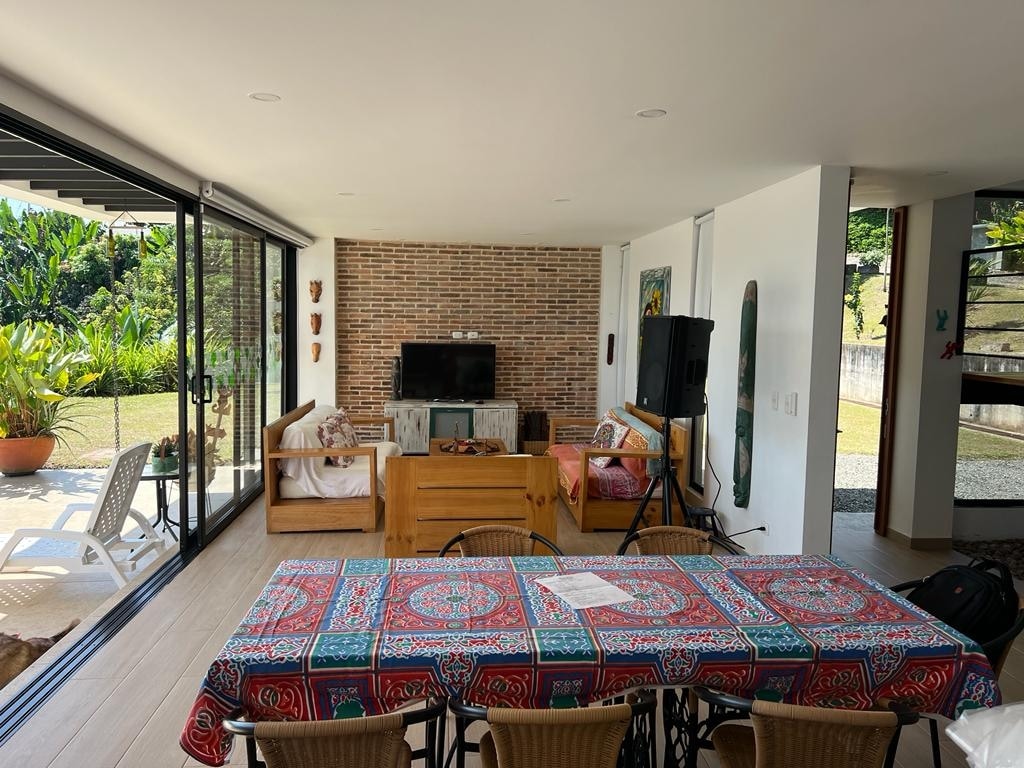 Linda casa entre Pereira y Manizales con una vista impresionante del valle y las montañas típicas de la región. Un lugar perfecto para explorar el Viejo Caldas o simplemente relajarte en un lugar súper privilegiado. Hasta 20 huéspedes* en 4 habitaciones con baño, piscina privada, Starlink Wifi, TV, Kiosco, BBQ, hamacas, Jacuzzi, zonas sociales, personal capacitado y dotación completa. No dejes tu viaje al azar. Reserva con la garantía y experiencia de TopSpot® 10 años creando estadías felices
