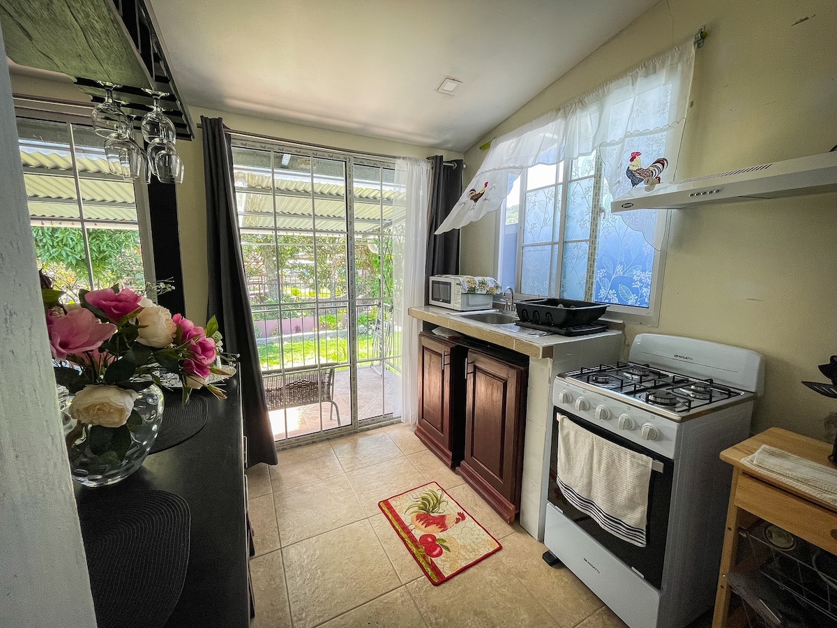 Denne koselige gjestesuiten med ett soverom/ett bad og egen inngang ligger praktisk i Boquete sentrum. Suiten har et fullt utstyrt kjøkken, en felles terrasse med utsikt over den nydelige bakgården med de beroligende lydene fra den nærliggende elven. Utforsk lokale butikker, restauranter og attraksjoner bare noen skritt unna døren din, og kom hjem til en fredelig søvn. Dette passer perfekt for alenereisende eller par som ønsker å utforske Boquete. Ikke egnet for barn.