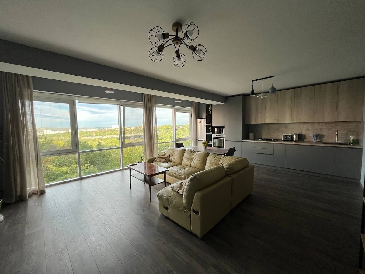 Leiligheten har en fantastisk panoramautsikt mot parken. Her finner du alltid en ren og fin atmosfære. Inne har vi alt du trenger for å bo her: vaskemaskin, kjøleskap, klimaanlegg, TV, sengetøy, håndklær, samt alt du trenger for å lage mat. Leiligheten ligger i den sentrale delen av byen, i nærheten av Kaufland, Shoping Malldova, direkte kollektivtransport til flyplassen.