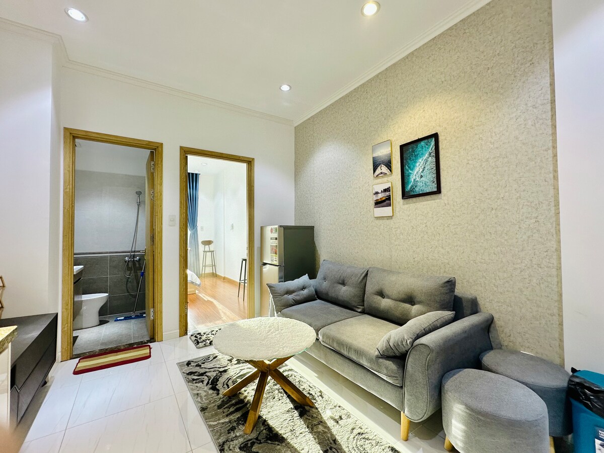 Luksuriøs leilighet med vakker utsikt i sentrum av Long Xuyen. – I nærheten av lokale markeder og supermarkeder: Coop, Vincom, Mega, Walking Street, Night Market, kirke, universitet. – 32 kvm med soverom, toalett, stue fullt utstyrt med moderne møbler: flatskjerm-TV, kjøleskap, sofa, elektromagnetisk komfyr, vaskemaskin, aircondition, vannvarmer … Ta med kofferten.